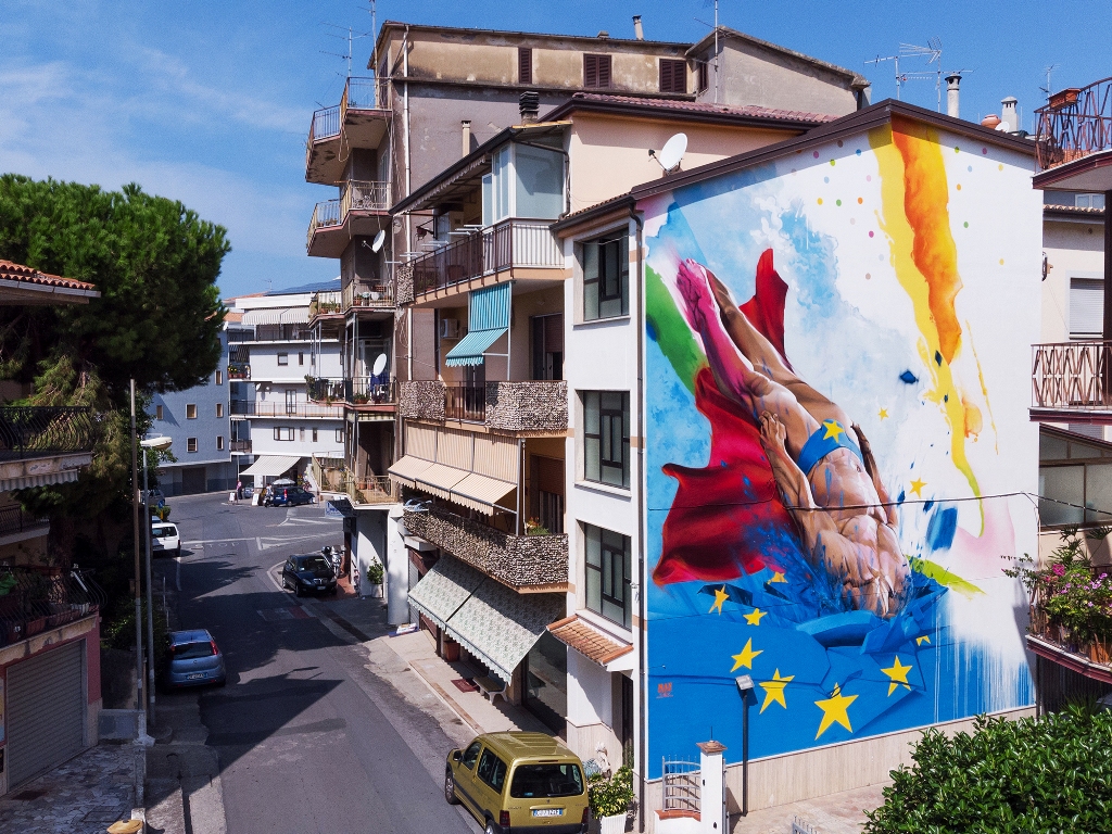 Quattro i nuovi interventi urbani realizzati a partire dall’8 agosto da altrettanti celebri street artist di fama internazionale. Da Napoli arriva Jorit con l’iper-realismo dei suoi volti in primo piano e con i dettagli vividi e precisi, quasi fotografici, dei suoi ritratti: ci lascerà stupiti? Indubbiamente. Da Padova, Tony Gallo con i suoi soggetti onirici e antropomorfi ci trasporterà invece nello stile sognante e multiforme che caratterizza i suoi lavori. Il terzo ospite, madrileno attualmente trapiantato a Chicago, culla del graffiti-writing, con i suoi lavori lasciati in giro per il mondo fin da ragazzino, Kraser porterà a Diamante il suo lettering site-specific e di sicuro i suoi contrasti accesi di colori. Ultima ma solo per caso, una figura molto nota dell’urban art femminile, riconoscibile da un tipico realismo misto ad elementi astratti: da Milano, SteReal ci incanterà con uno dei suoi murales in cui generalmente raffigura la forza di essere donna contro le discriminazioni.
