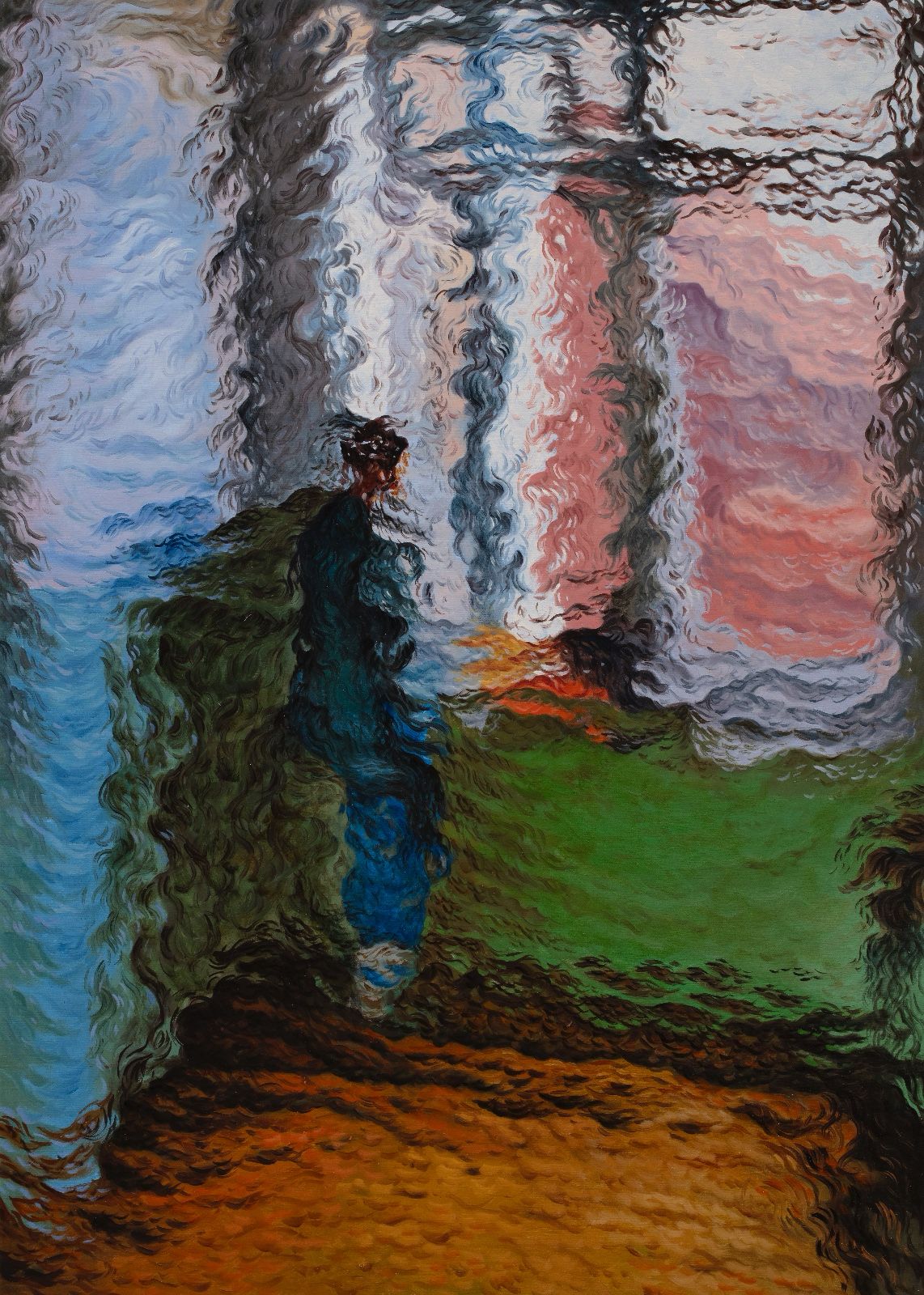 L’esposizione si articola come un’unica installazione il cui filo conduttore è la luce. Le opere seguono infatti una logica narrativa che pone in relazione luce e desiderio. Così, l’esistenza umana va interpretata alla luce di una trascendenza, di un assoluto.