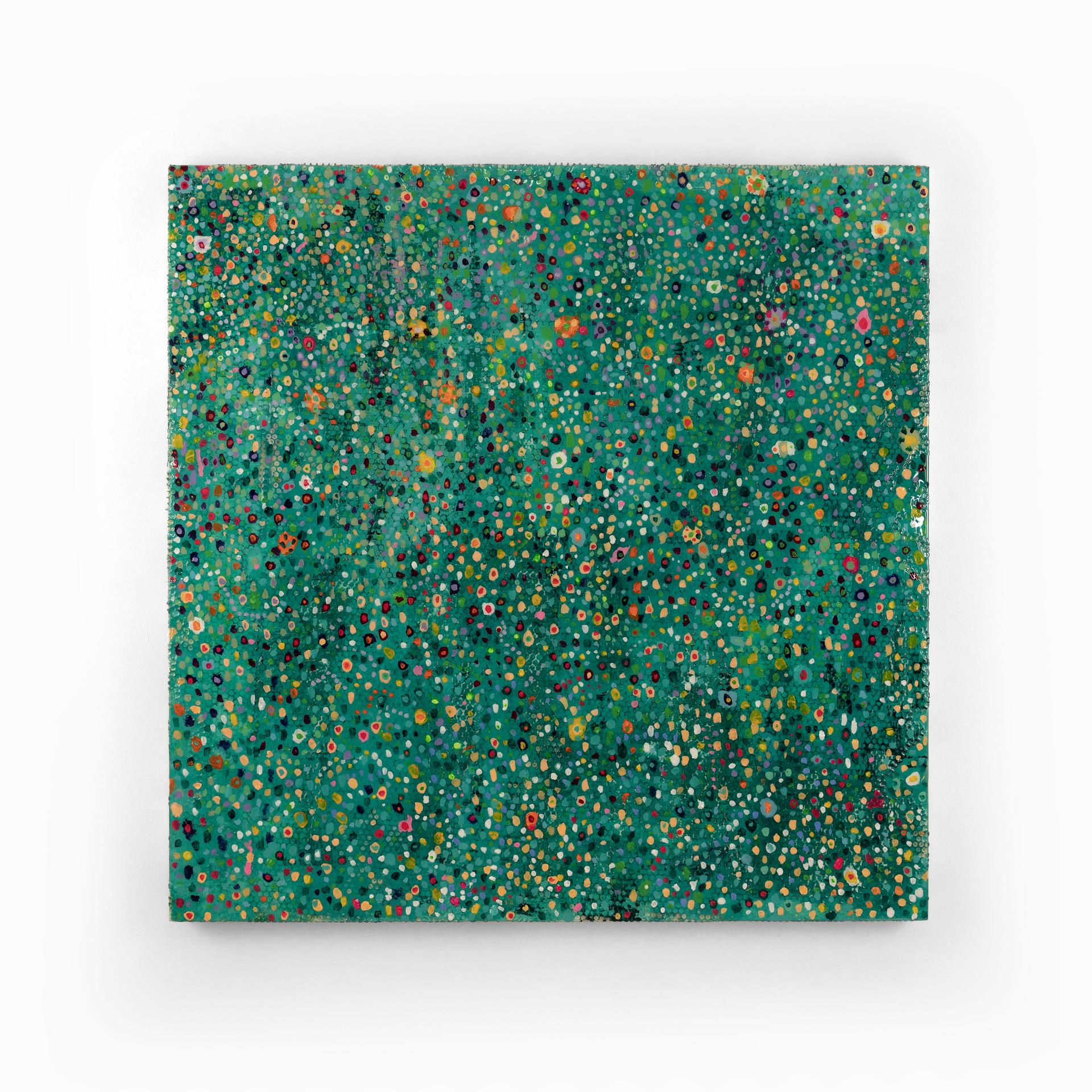 Prodotti cementizi, resine e pigmenti, ma anche reti da cartongesso e fogli di pluriball, in memoria e onore del lavoro paterno, vengono decontestualizzati e riutilizzati per costruire opere stratificate e scultoree con una griglia visiva che è la sua lente sul mondo.