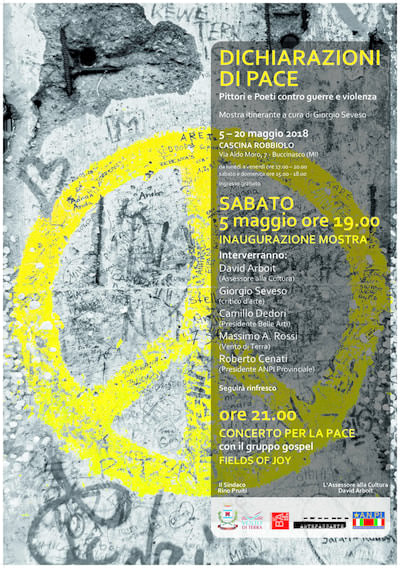 Sabato 5 maggio verrà inaugurata l’ultima tappa della mostra “DICHIARAZIONI DI PACE – Pittori e Poeti contro guerre e violenza”, a cura di Giorgio Seveso.