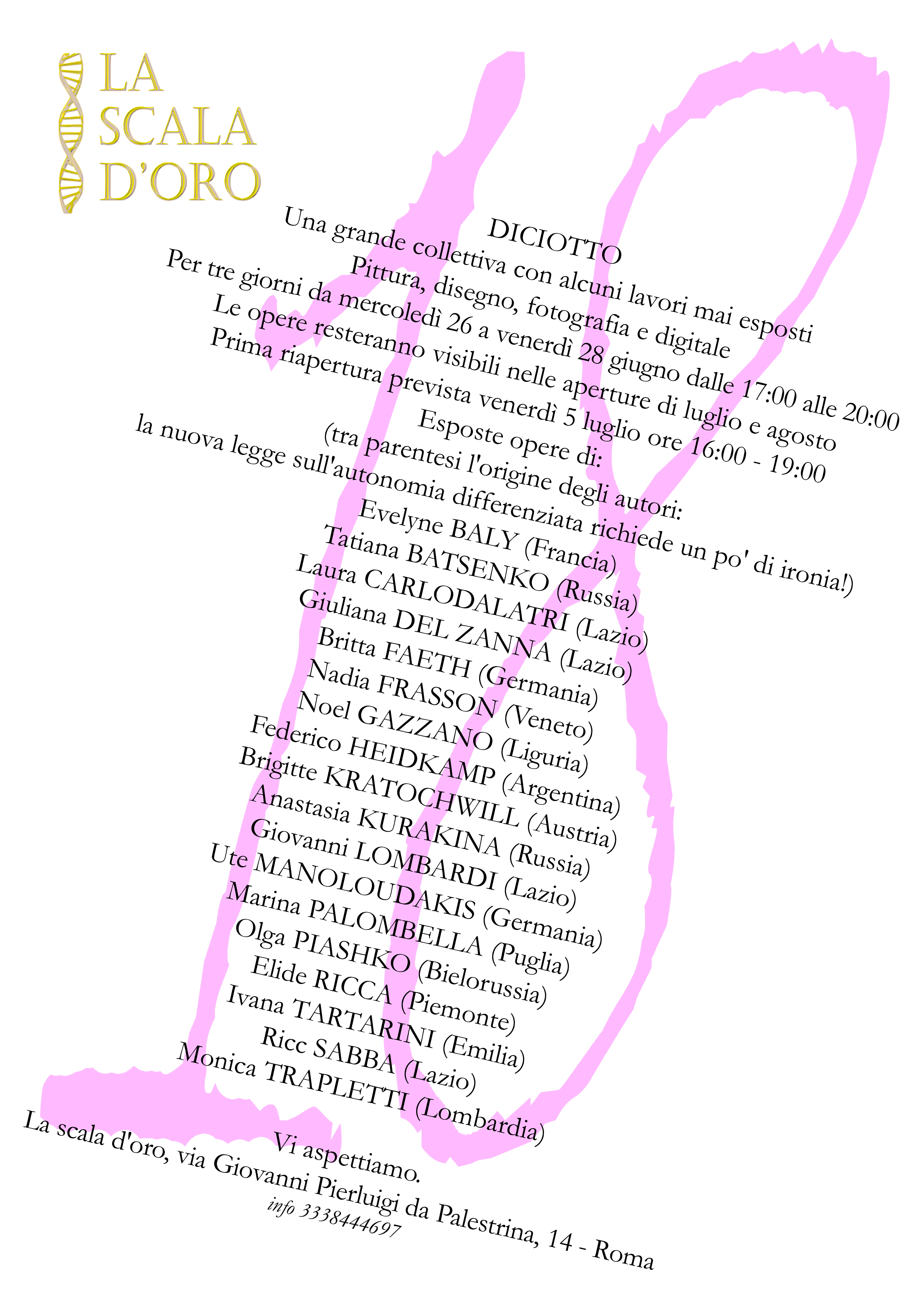 Esposizione di opere di pittura, disegno, fotografia e digitale di 18 artisti contemporanei di sette nazioni – Argentina, Austria, Bielorussia, Francia, Germania, Italia, Russia – e sei regioni italiane.