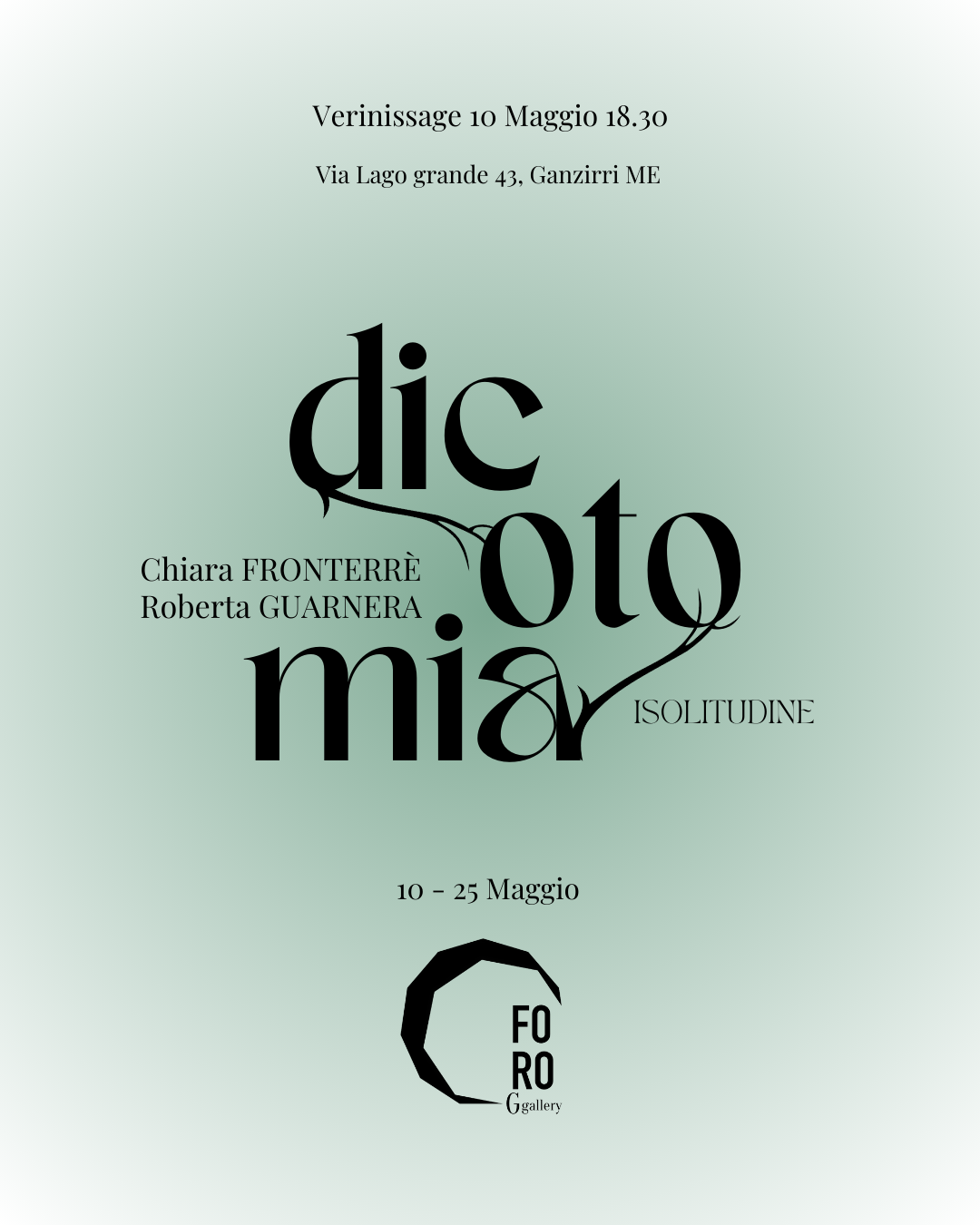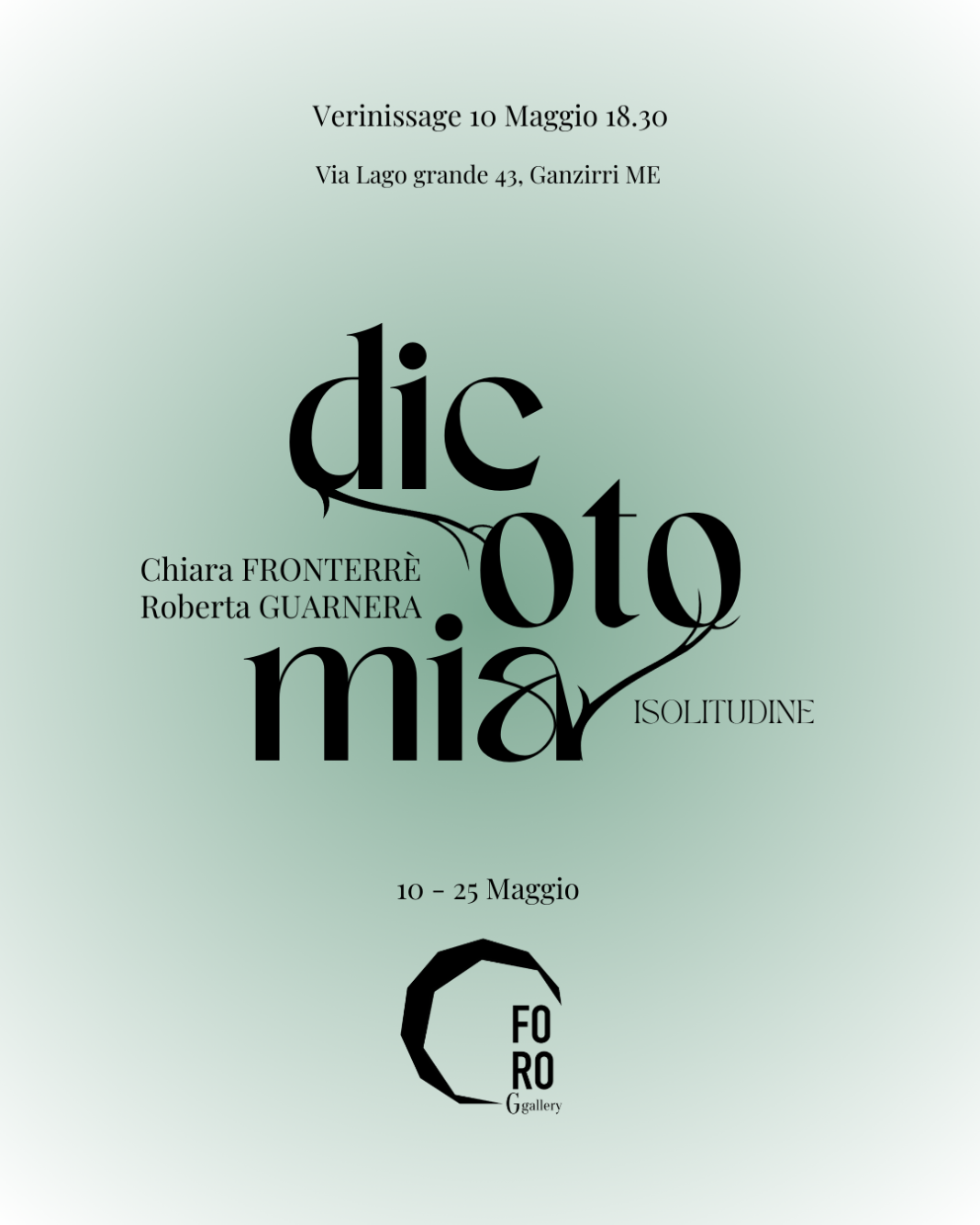 Dopo il primo dialogo artistico presso lo Studio BLU81 a Marzamemi “Dicotomia - Isolitudine” si sposta presso la FORO G gallery di Ganzirri, Messina, dal 10 al 25 Maggio.