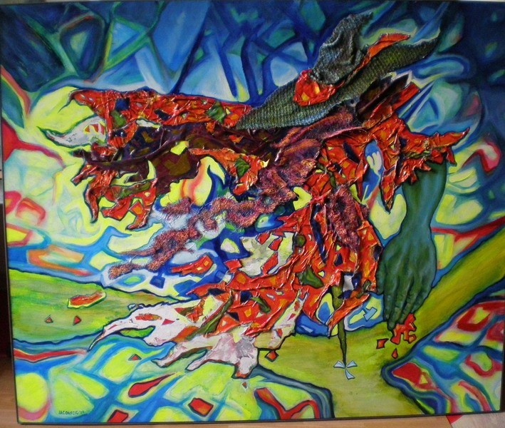 Precario e immortale - scrive Accerboni - lo spaventapasseri, che qualcuno chiama anche lo “straccione divino”, rappresenta il principale motivo ispiratore di molte opere del pittore e scenografo triestino Diego Iaconfcic, la cui arte trae spunto dal mondo naturale e da quello magico, da un simbolismo fantastico e a tratti surreale, che s’ispira anche ad antichi riti e miti, come per esempio quello di Orfeo, che incantava gli animali con la musica...
