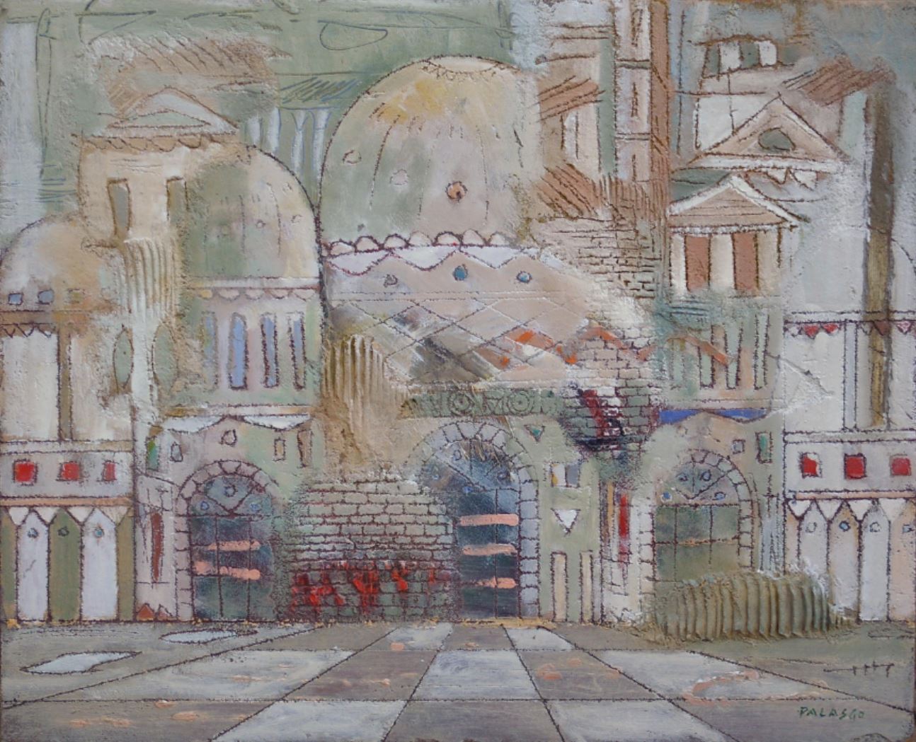 Palasgo offre con le sue opere l’esperienza di un avvicinamento a verità da sempre radicate nella nostra coscienza. Nelle sue cattedrali egli traduce un antico linguaggio architettonico, restituendo all’osservatore contemporaneo le suggestioni in un mondo colorato e sfuggente, ma totalmente presente