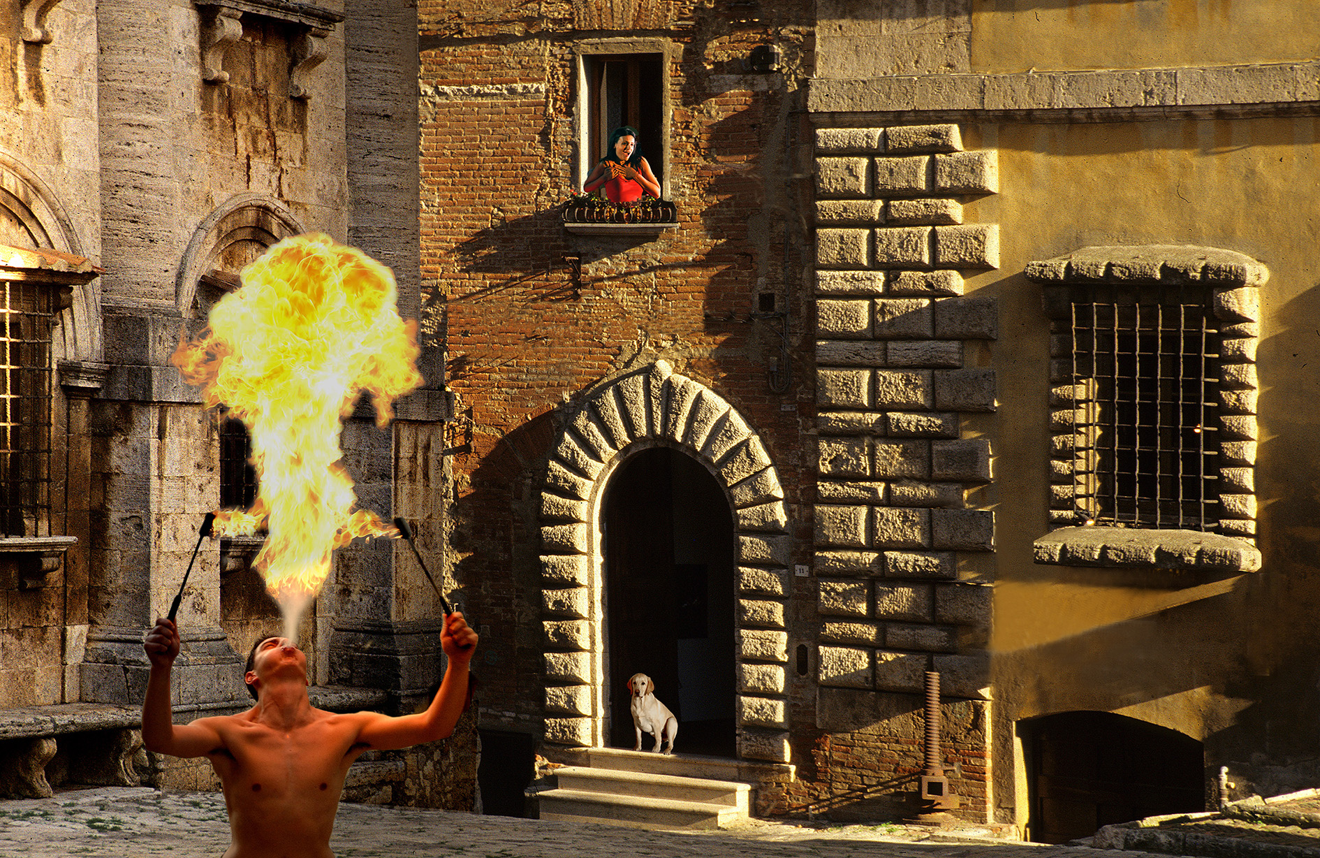 Un viaggio di interpretazioni, di una realtà geografica, teatrale, antropologica e sociale, che dice sempre altro dalla cronaca, dalla contingenza. Una bellezza che si fa linguaggio, profondo e spesso ironico, di una realtà disvelata tra le pieghe delle esistenze. Dal mito classico al contemporaneo, dai quadri della rappresentazione teatrale a quelli ancor più ricchi di spunti della quotidianità dell’imprevisto, dall’uso della pellicola, fino a quello dei moderni software, in un collage ricomposto al filtro della sagace sensibilità artistica di D’Ascanio.