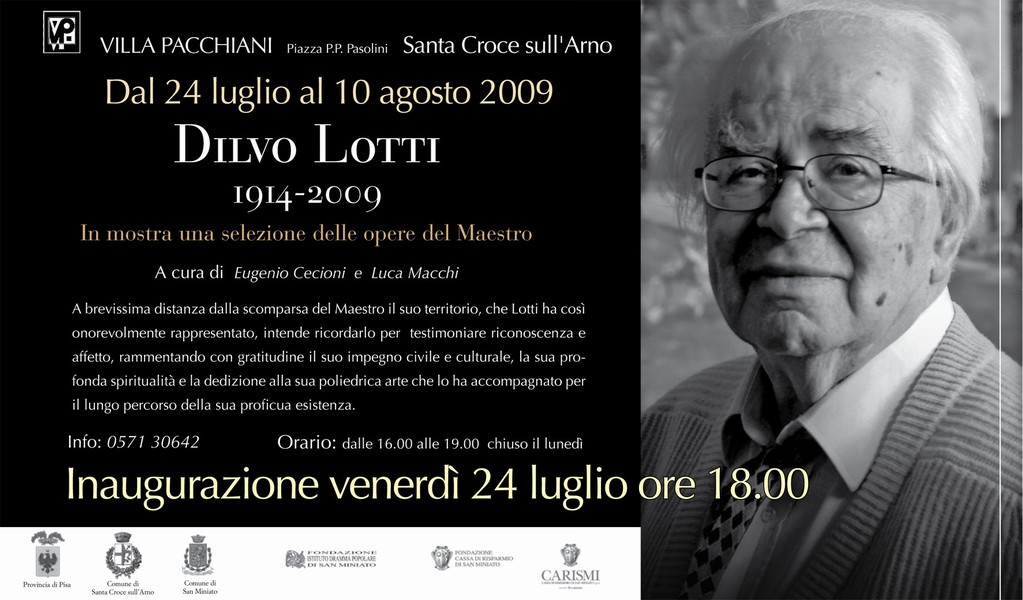 Venerdì 24 luglio alle ore 18 a Villa Pacchiani si inaugura “Dilvo Lotti, 1914-2009”, mostra che documenta l’attività dell’artista nell’intero arco della sua feconda e lunga vita.