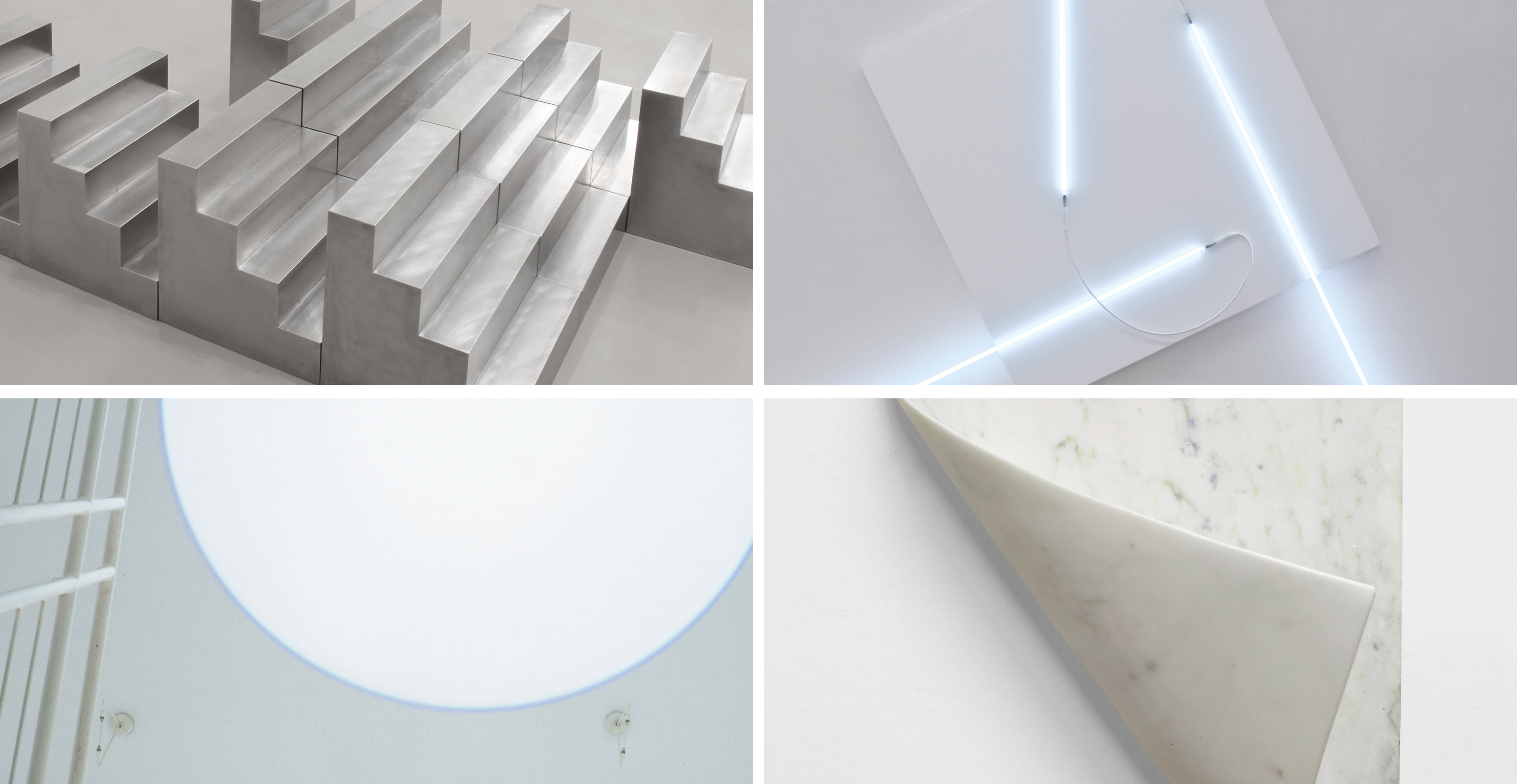 Al piano superiore della galleria è presentato un nucleo di lavori in marmo (Sospiri) di Antonio Trotta (Stio, 1937 - Milano, 2019), forme plastiche che riecheggiano i profili di fogli di carta di un’era indefinita, di un futuro sempre eterno, oppure il reperto di un passato ancora in divenire. I cementi di Arcangelo Sassolino (Vicenza, 1967), artista che agisce soprattutto sui materiali, sono territorio di sperimentazione di forme e di profili sinuosi che si sfrangiano dialogando con le geometrie di luce dei neon bianchi di François Morellet (Cholet, Francia, 1926 - 2016), che già negli anni Cinquanta libera l’arte contemporanea da ogni possibile impegno narrativo per intraprendere una ricerca in grado di essere sperimentale e radicale. Al centro della sala espositiva è presentata un’opera di Nicola Carrino (Taranto, 1932 - Roma, 2018) che ha sempre lavorato sull’essenzialità di forme modulari rigidamente progettate in grado di essere ricomposte secondo una libera scelta dell’autore, ma anche di scandire vuoti e pieni degli elementi che costituiscono lo spazio con cui si relazionano. Nella sala adiacente Luce/Ombra + X, 1981 di Gianni Colombo (Milano, 1937 - Melzo, 1993), tra i fondatori del Gruppo T e che dal 1959 ha indagato la profonda relazione tra spazio, tempo e percezione, genera un ambiente immersivo che invita a perdersi e a ripensare il nostro rapporto con l’opera d’arte.