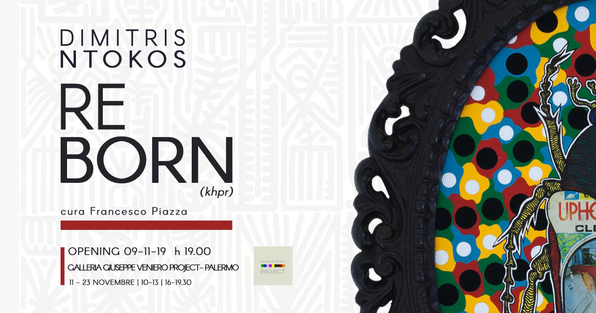 Si inaugura sabato 9 novembre alle ore 19.00, presso la Galleria Giuseppe Veniero Project, in Piazza Borsa 20 a Palermo, “Re-Born (khpr)”, la prima personale in Italia dell'artista ateniese Dimitris Ntokos. Tra i personaggi più fertili del panorama artistico contemporaneo Ntokos si divide tra progetti di street art e la pittura in studio. In RE-BORN (khpr), curata da Francesco Piazza, sono esposte alcune tra le opere più rappresentative della sua ricerca artistica che negli anni ha raggiunto una consapevolezza sempre più matura e strutturata. Riconoscibile per i suoi pseudo geroglifici, Ntokos raffigura in quasi ogni sua opera lo Scarabeo, per gli egizi Kepher simbolo di resurrezione (khpr, le 4 lettere usate per definire anche il verbo divenire) e lo trasforma nel “deus ex machina” attraverso il quale elaborare il suo personale linguaggio artistico. Laddove esso viene riprodotto quasi entomologicamente, come amuleto protettore e ispiratore nelle opere che lo ritraggono personaggio principale contaminato da cromatismi pop e intromissioni simboliche di un capitalismo storico ma a tutti gli effetti a noi contemporaneo o quando diventa pattern ossessivo e superficie sulla quale costruire successivi piani di rappresentazione, lo Scarabeo, sebbene raffigurato attraverso innumerevoli semplificazioni pittoriche e concettuali, reagisce alla tentazione di divenire solo grafica o decorazione trasformandosi e moltiplicandosi in una progressione che è un alfabeto in cui ogni simbolo è unico e irripetibile.