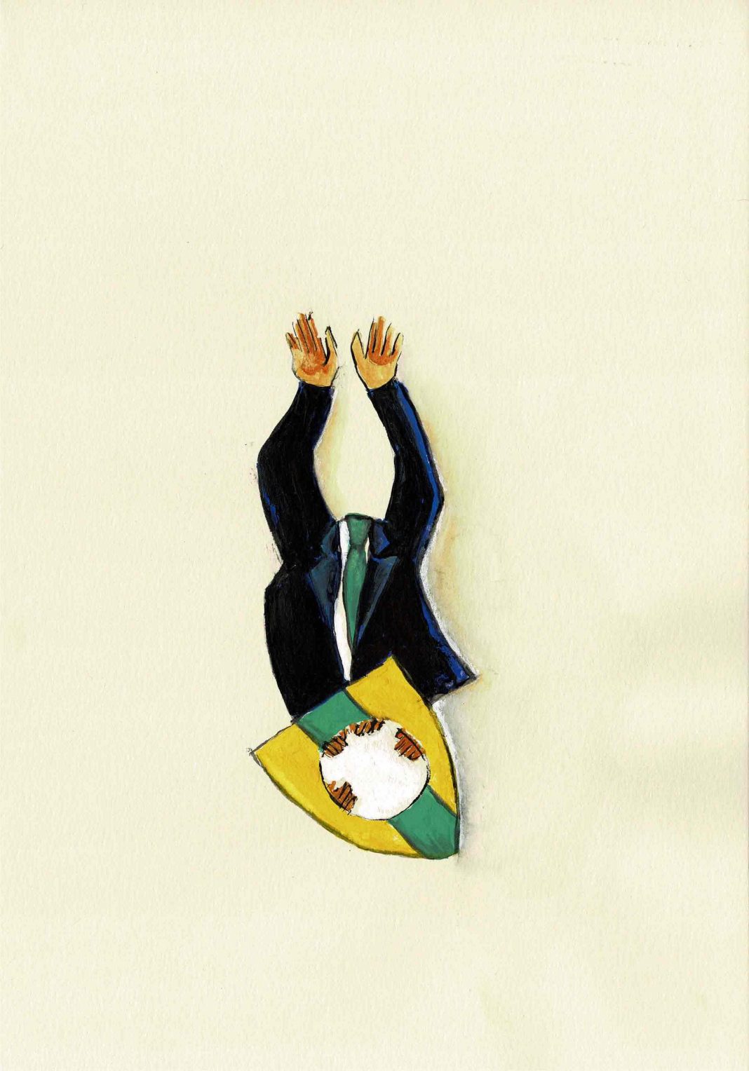 Così i grandi arazzi cuciti a macchina, che rappresentano alcuni leaders del mondo (come Boris Johnson, Melania e Donald Trump) dall’alto dei loro podi e le pitture a gouache, una sorta di stemmi composti che si richia- mano all’araldica e all’iconografia medievale, traggono materiale e sono ispirate al fascino visivo dell’estetica politica più comune: bandiere, micro- foni, politici che pronunciano parole che ci faranno cambiare il modo in cui dobbiamo vivere.