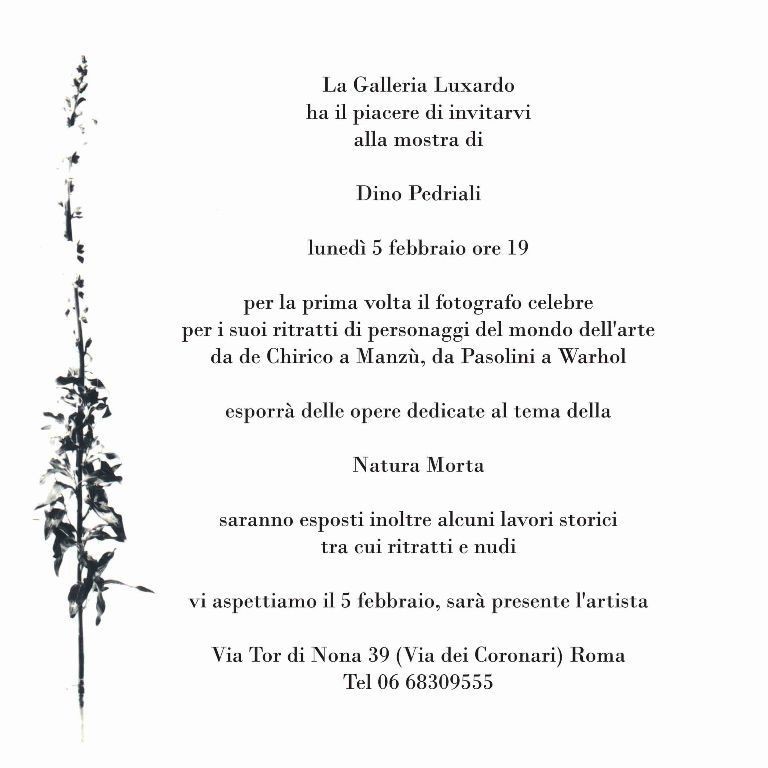 L’arte è togliere. Raggiungere l’essenza delle cose, metter a nudo l’anima, spogliare. Dino Pedriali è celebre per il Nudo a cui ha saputo conferire la dimensione spazio-tempo basata su un rapporto di messa in scena tra chi fotografa e chi è fotografato. Il Nudo diventa palcoscenico, corpo dell´Anima, le forme – quasi astratte, trasparenti - sono scolpite dai chiaroscuri della sofferenza e della bellezza. Pedriali ha reso il Nudo scultoreo, astratto senza togliergli la linfa, la pulsione, la vita. Al tempo stesso Dino Pedriali si è dedicato a ciò che vita non è più e morte non è ancora: la Natura Morta, still life che è vita immobile raggelata, “essenzializzata” . Se la luce era complice nel chiaroscuro del rapporto fotografo –modello nella Natura Morta essa diventa indiscussa protagonista. Essa smaterializza l´oggetto irradiandolo. Nelle Natura morte di Pedriali tutto ciò che è natura, terra madre - frutti, piante, fiori, animali – “muore” per risorgere come Forma Pura. Pedriali spoglia la materia, la scarna, la colpisce con raggi di luce per rendere visibile l´invisbile. Nelle immagini di Pedriali si avverte un´ insolita quiete, è come se fosse arrivata dopo una terribile tempesta e violenti scontri. E´ come se l´artista avesse fatto a pugni con la materia per liberarsi da essa, per piegarla alla sua volontà. E se il frutto si arrende più facilmente l´animale pone più resistenza ma alla fine anche esso si trasforma in luce pura e in raggiante purezza.