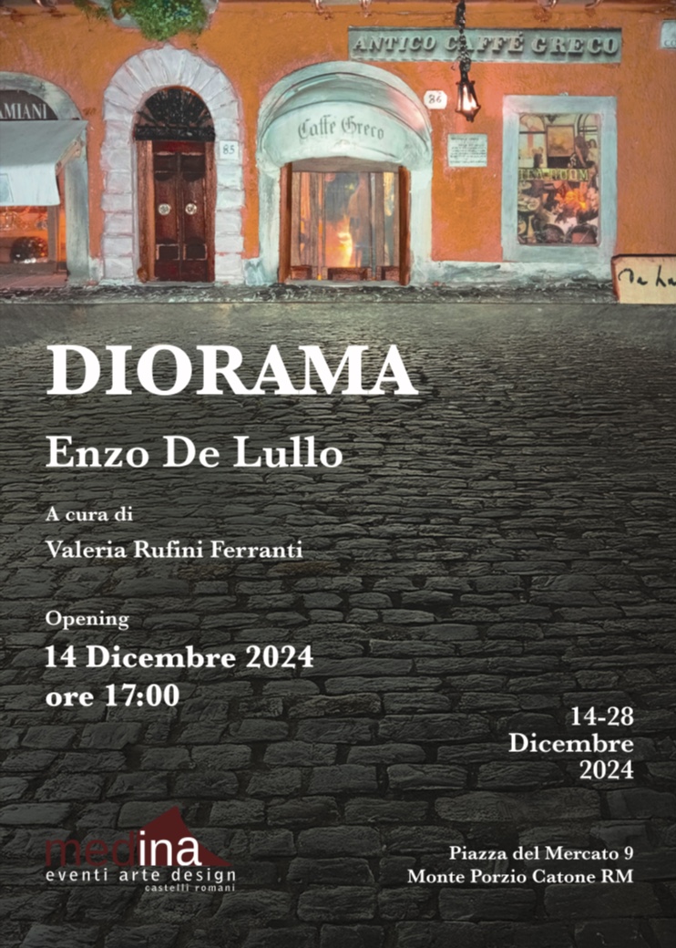 Dal 14 al 28 dicembre 2024 Medina Art Gallery Castelli Romani presenta la mostra personale di Enzo De Lullo intitolata “DIORAMA” a cura di Valeria Rufini Ferranti.