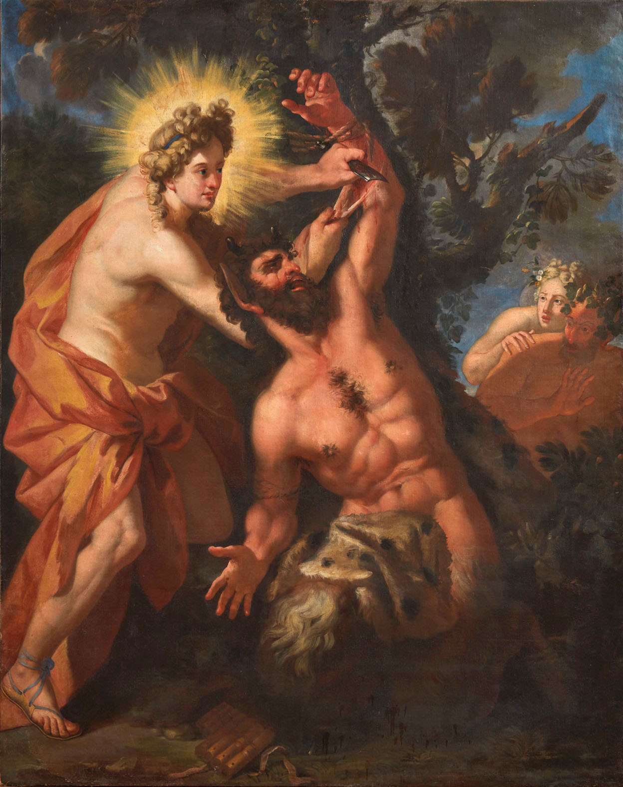 Dalla Lombardia al Veneto per segnalare la scena mitologica a olio su tela di grandi dimensioni di scuola veneta del XVII secolo APOLLO E MARSIA, offerta a 15.000/20.000 euro (lotto 42).