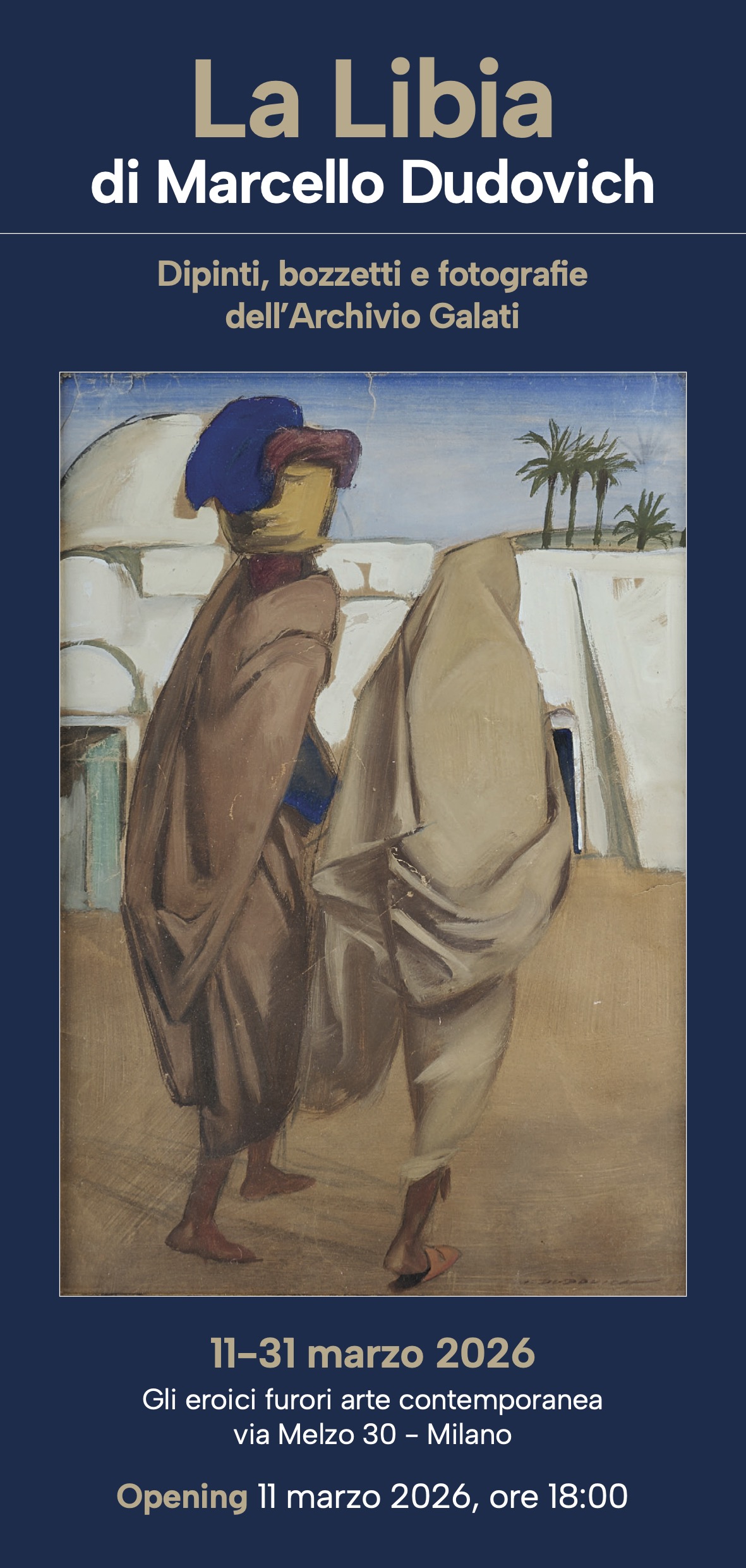 Dall’11 al 31 marzo 2026 Gli eroici furori ospita la mostra La Libia di Marcello Dudovich. Dipinti, bozzetti e fotografie dell’Archivio Galati, un progetto espositivo dedicato a Marcello Dudovich (1878-1962), maestro