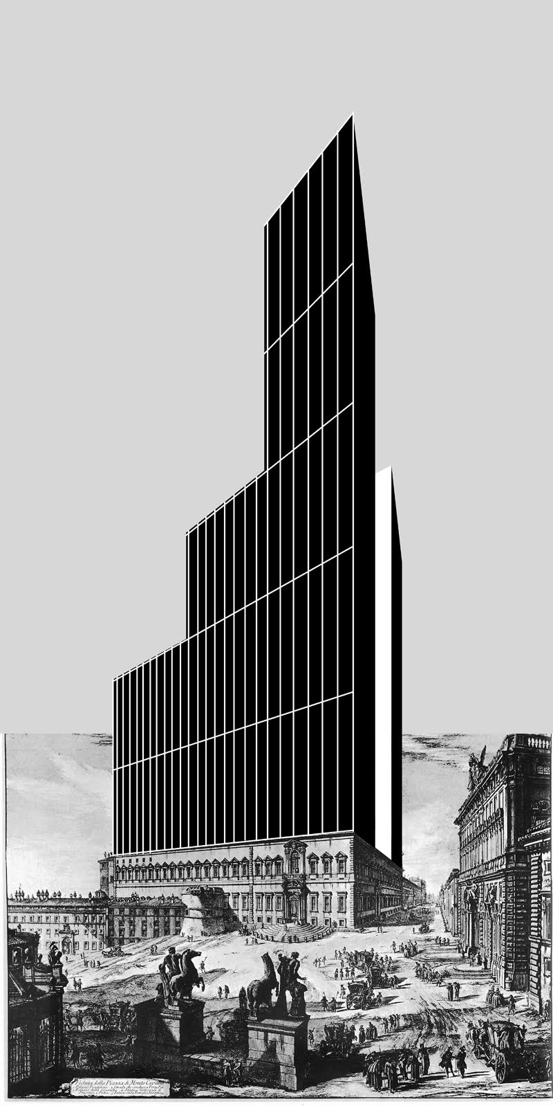 Sei incisioni di Carmelo Baglivo si confrontano con un prototipo settecentesco. Sui lavori, in cui non si distingue il limitare della traccia antica e del nuovo segno, si descrive un mondo in cui San Pietro farà da fondamenta a un nuovo palazzo per uffici.