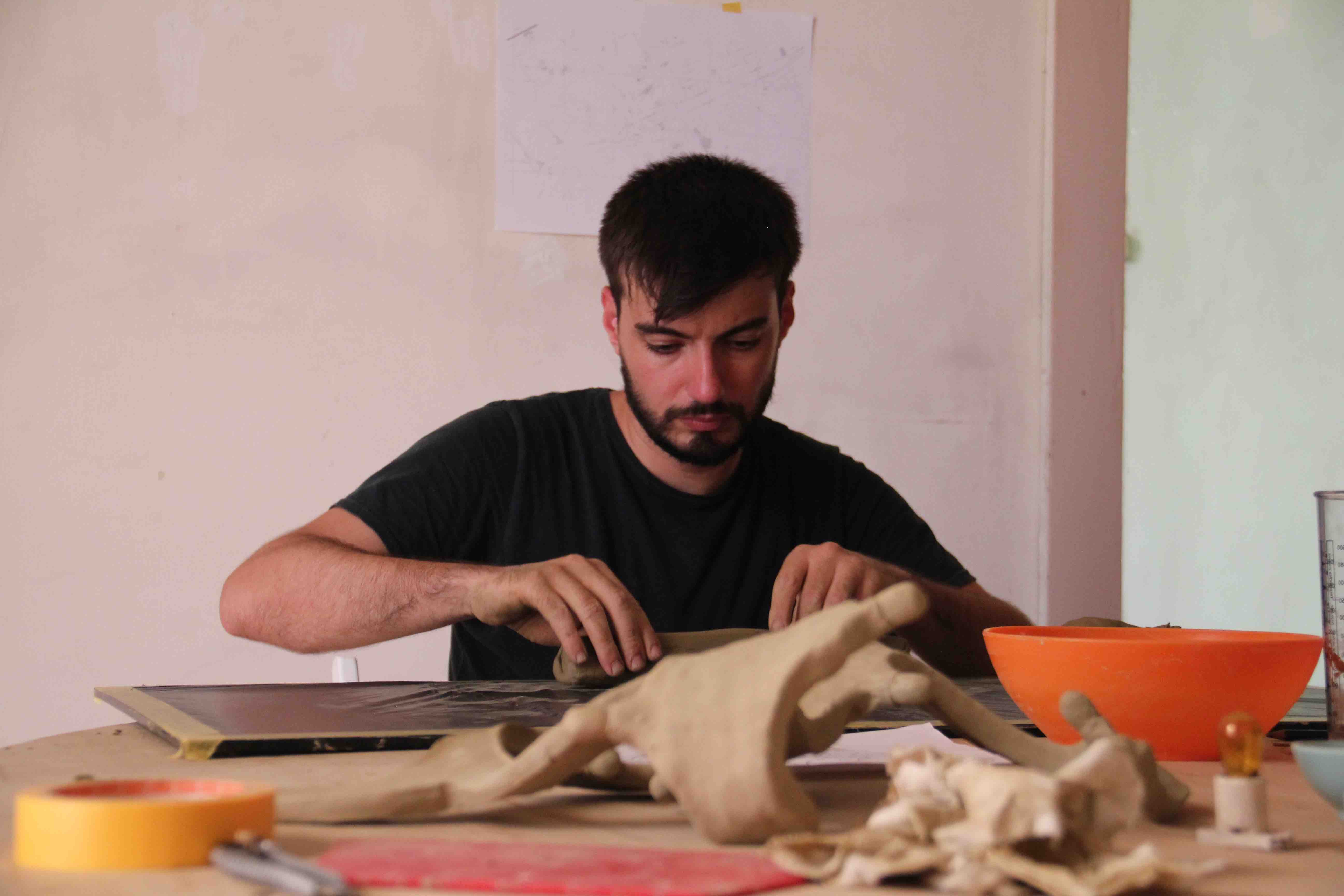 Per l’intera durata della residenza Alessandro Costanzo esegue un rituale autocelebrativo: a giorni alterni lavora e riposa contrastando l’esigenza contemporanea di inseguire il tempo. Le sezioni di luminarie in ceramica che produce hanno il peso specifico dell’acqua ingerita dall’artista nei giorni di riposo e dichiarano quindi il suo stare in un luogo e in un tempo che si determina nello scorrere paradossale tra pianificazione e imprevisto.