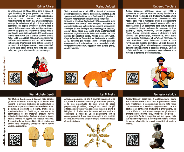 L’excursus del passato sfocerà nelle ripercussioni del presente, dei nostri tempi odierni e della nostra quotidianità al fine di prenderne spunto e di omaggiare queste nostre impronte storiche tangibili conferendole un nuovo valore: storie, immagini, progetti e schizzi di disegni preparatori e manufatti, molti dei quali di raro pregio e inediti, mai esposti fino ad ora; balocchi e giocattoli di utilizzo ludico/pedagogico ma, non solo, talvolta pezzi di Design che impreziosiscono e rifiniscono l’arredamento di uno studio, di uno spazio culturale. L’artigianato più di nicchia che non può ridursi al commerciale per l’unicità e la selezione.