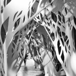 Nelle ex cucine Fragilis Natura Silentium, installazione site specific a cura di Matteo Capobianco Ufo5. Una foresta di carta bianca, sospesa tra luce e ombra, che accoglie il visitatore in un silenzio rarefatto e surreale, un’installazione immersiva che diventa al tempo stesso ambiente e performance, un viaggio attraverso una giungla artificiale fatta di strati sovrapposti di carta intagliata a mano e veli traslucidi di carta velina. Ogni passo richiede attenzione, ogni movimento diventa una scelta: un invito poetico e politico a riflettere sul nostro impatto sull’ambiente.