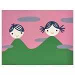Ale Puro presenta Siamo come montagne, percorso che si ispira al titolo di una sua opera in cui i volti di due bambini fuoriescono dalle cime di due montagne indissolubilmente unite tra loro. Una serie di opere pittoriche e disegni che creano un mondo poetico e sognante, passando attraverso lo sguardo dei più piccoli. Uno stile piatto fatto di linee semplici e campiture ampie, capace di catturare attimi quotidiani tra il pop e il surreale.