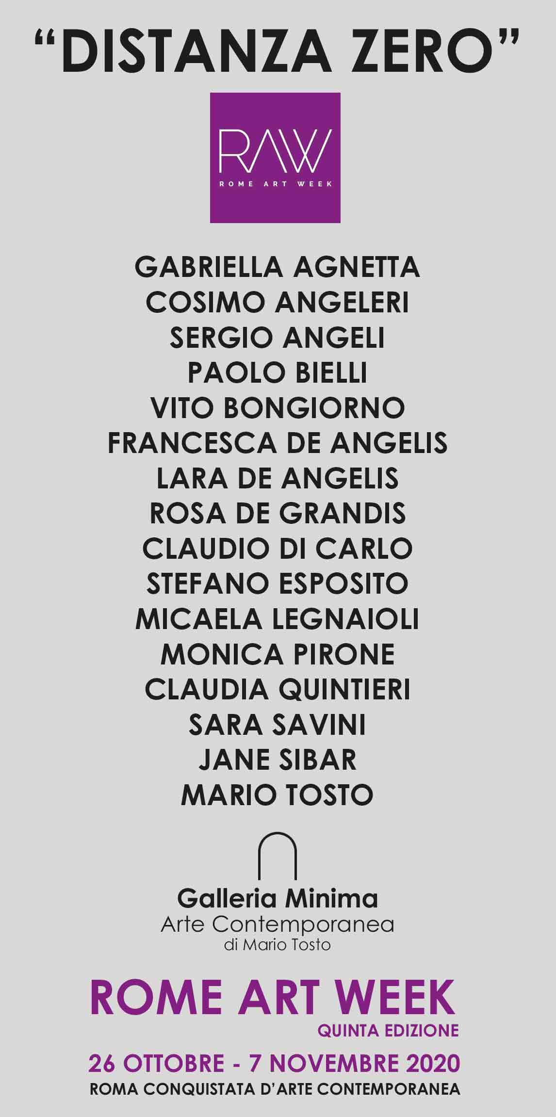 La Galleria Minima in occasione del RAW 2020 espone opere di un insieme non arbitrario e casuale ma conseguente a un preciso ragionamento artistico. Una grande variazione collegata ma indipendente.
