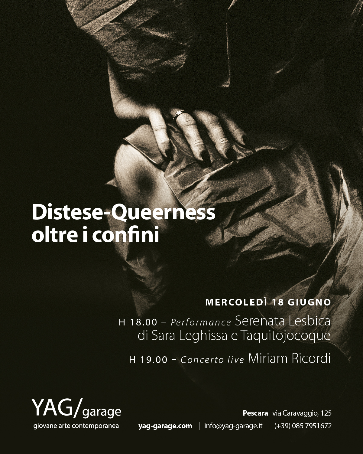 Mercoledì 18 giugno a partire dalle ore 18, presso la galleria YAG/garage si terranno la performance “Serenata Lesbica” di Sara Leghissa e Taquitojocoque e il Concerto Live di Miriam Ricordi.