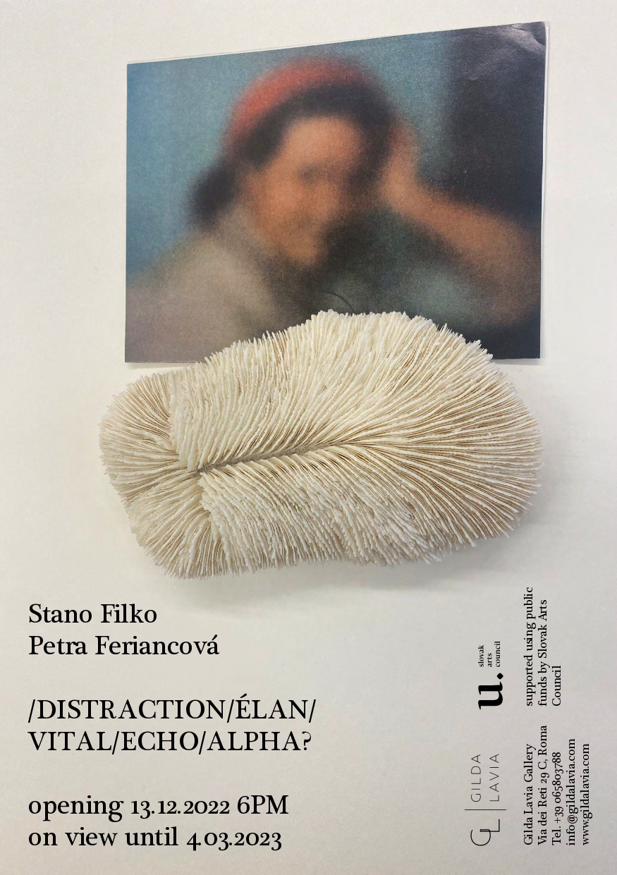 La Galleria Gilda Lavia ha il piacere di ospitare DISTRACTION/ÉLAN/ECO/ALPHA?, doppia personale degli artisti Stano Filko e Petra Feriancová che inaugurerà martedì 13 dicembre alle ore 18,00.