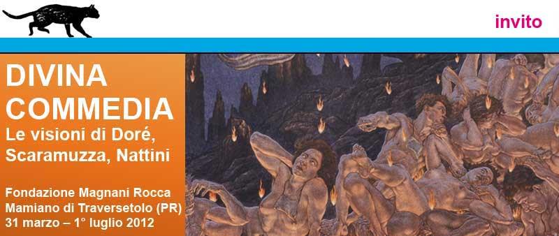 Incubi, angosce, estasi di grandi illustratori della Divina Commedia in un percorso di notevole suggestione che conduce il visitatore dalle tenebre infernali alla luce paradisiaca nelle sale espositive della Fondazione Magnani Rocca di Mamiano di Traversetolo, presso Parma.