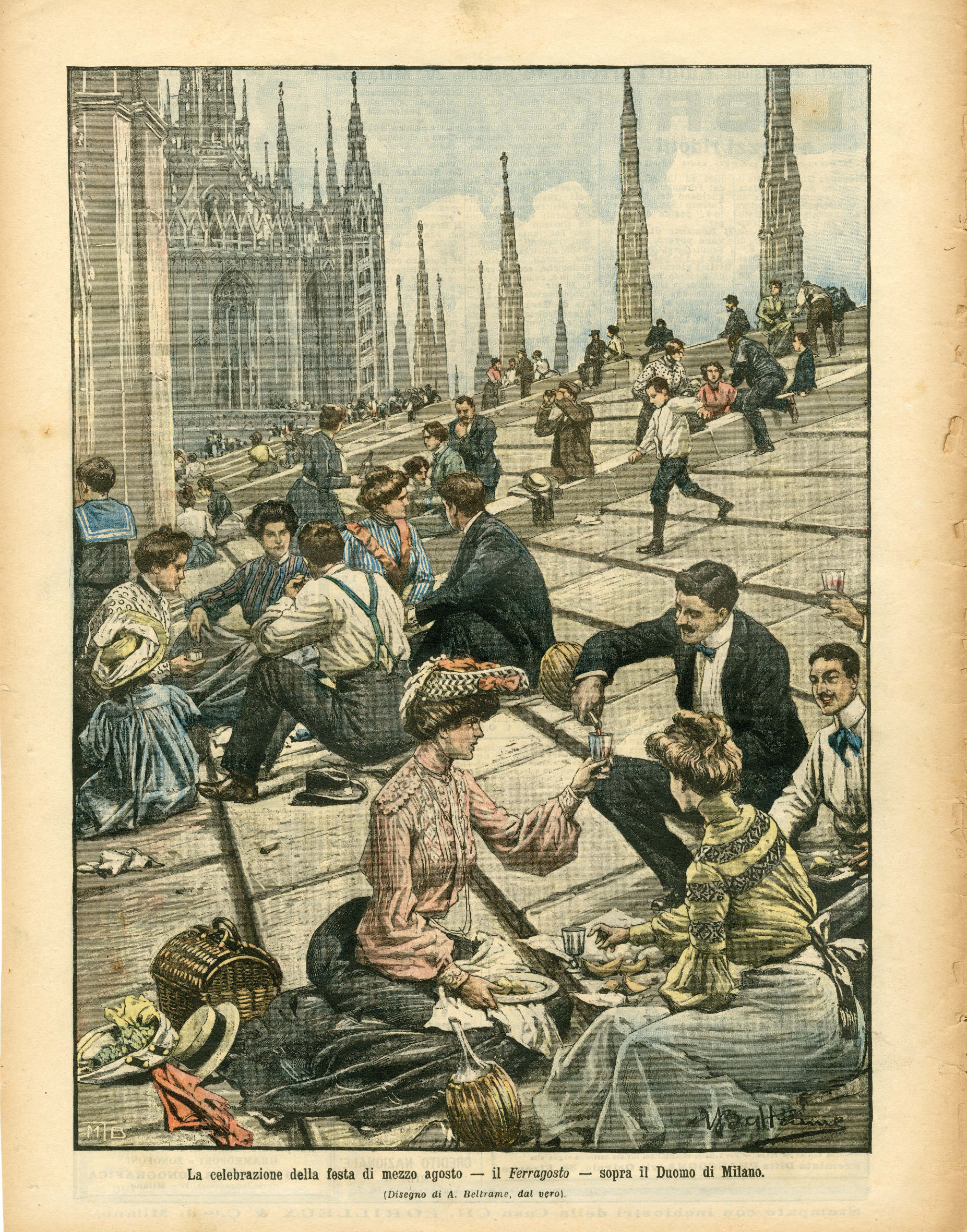 Tra le carte in mostra è possibile imbattersi nel pranzo di Ferragosto del 1904 sotto le guglie del Duomo di Milano e negli scugnizzi napoletani “mangiamaccheroni” sempre del primo Novecento, toccando poi gli anni Trenta con la pubblicità del modernissimo frigorifero Algidus e dell’innovativo Caffè Cirio sottovuoto. Si assiste quindi all’avvento della televisione nel 1954 e al successo televisivo di Carosello, per concludere con un omaggio al grande Gualtiero Marchesi.