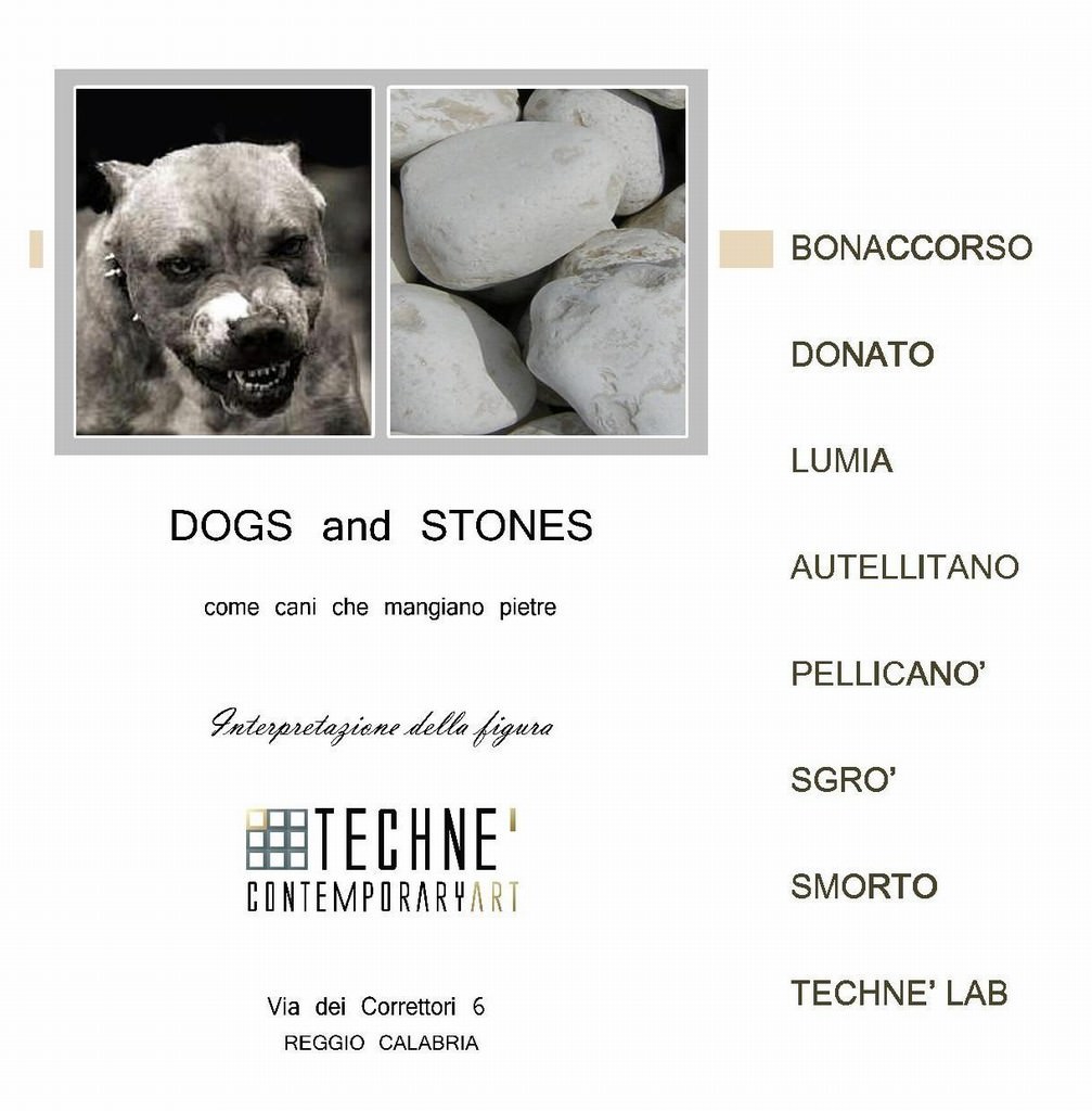 Martedì 29 giugno alle ore 20.00, Technè contemporaryart, presenta la mostra collettiva dal titolo “DOGS and STONES”. Gli artisti invitati dalla galleria, sono stati chiamati a riflettere sul disagio, sulle prerogative di comunicabilità e sue declinazioni. La galleria si pone come luogo del confronto, territorio comune e decentrato, abitacolo asfissiante o mondo parallelo calato nel cuore del centro storico di un luogo fisico (Reggio Calabria), ma anche mondo proiettato in una dimensione dove la dialettica, il linguaggio, sono vettori della comunicazione, mai scissi dalla sostanza delle cose visibili e invisibili. Dogs and Stones si contrappone al silenzio assordante nonostante il rumore della bocca a contatto con le pietre può far venire il dubbio che il gesto non sia seguito da una qualsivoglia forma di comunicazione. Ma se non vi è silenzio in quel disagio che il cane risolve mangiando le pietre, non ci sarà silenzio davanti a una mostra che viene fuori partendo da quella che intanto è diventata metafora, dispiegamento d’immagine.