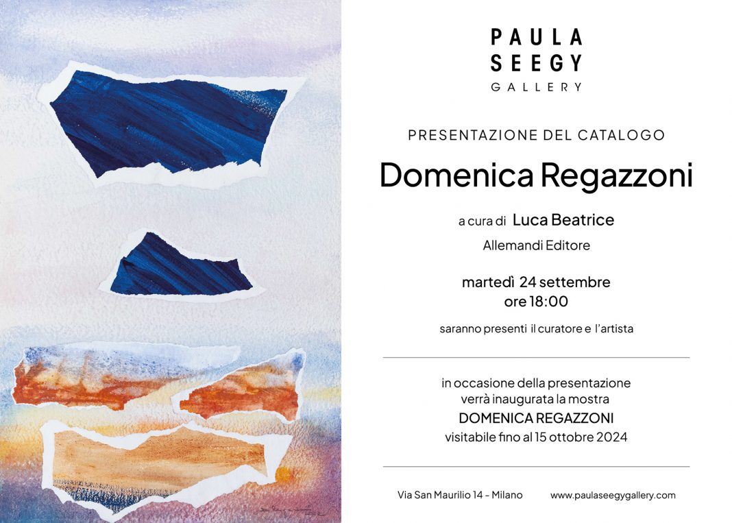 La Paula Seegy Gallery riapre la stagione delle mostre martedì 24 settembre alle ore 18 con un doppio appuntamento: la presentazione della monografia di Domenica Regazzoni a cura di Luca Beatrice edita da Allemandi e l’inaugurazione della mostra dedicata all’artista, visitabile fino al 15 ottobre.