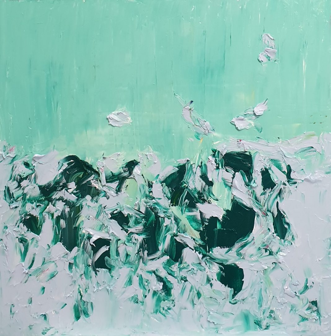 Laddove la pittura potrebbe apparentemente definirsi informale, osservando meglio, ci accorgiamo invece che nulla è lasciato all’impulso o al caso, ma che ogni mutamento è studiato con cura, in una composizione che non si limita a un assemblaggio cromatico ma che vive il colore in ogni sua intensa variante. Le masse e le loro convessità interagiscono con l’ambiente circostante, con le sue luci e con il movimento dell’osservatore, che animano le superfici poggiate sulla tela, in un gioco che proietta “nel colore”. L’approccio sensoriale diventa così estremamente stimolante e coinvolgente.