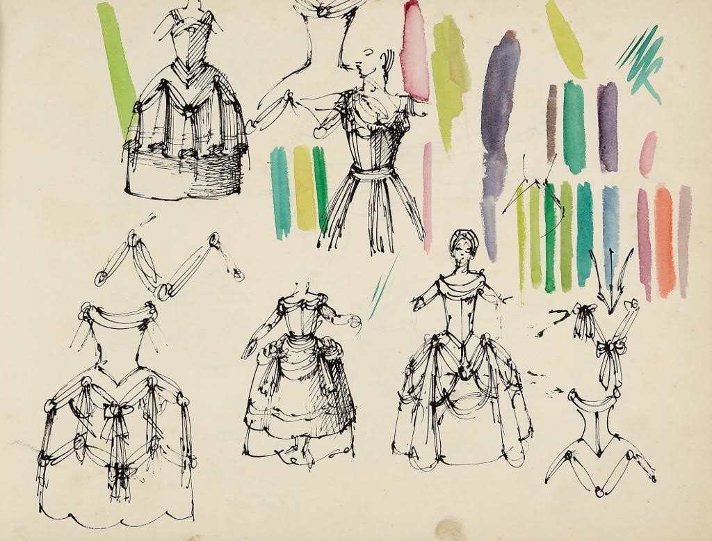 · gli schizzi per una scenografia del balcone di “Romeo e Giulietta” (1955).