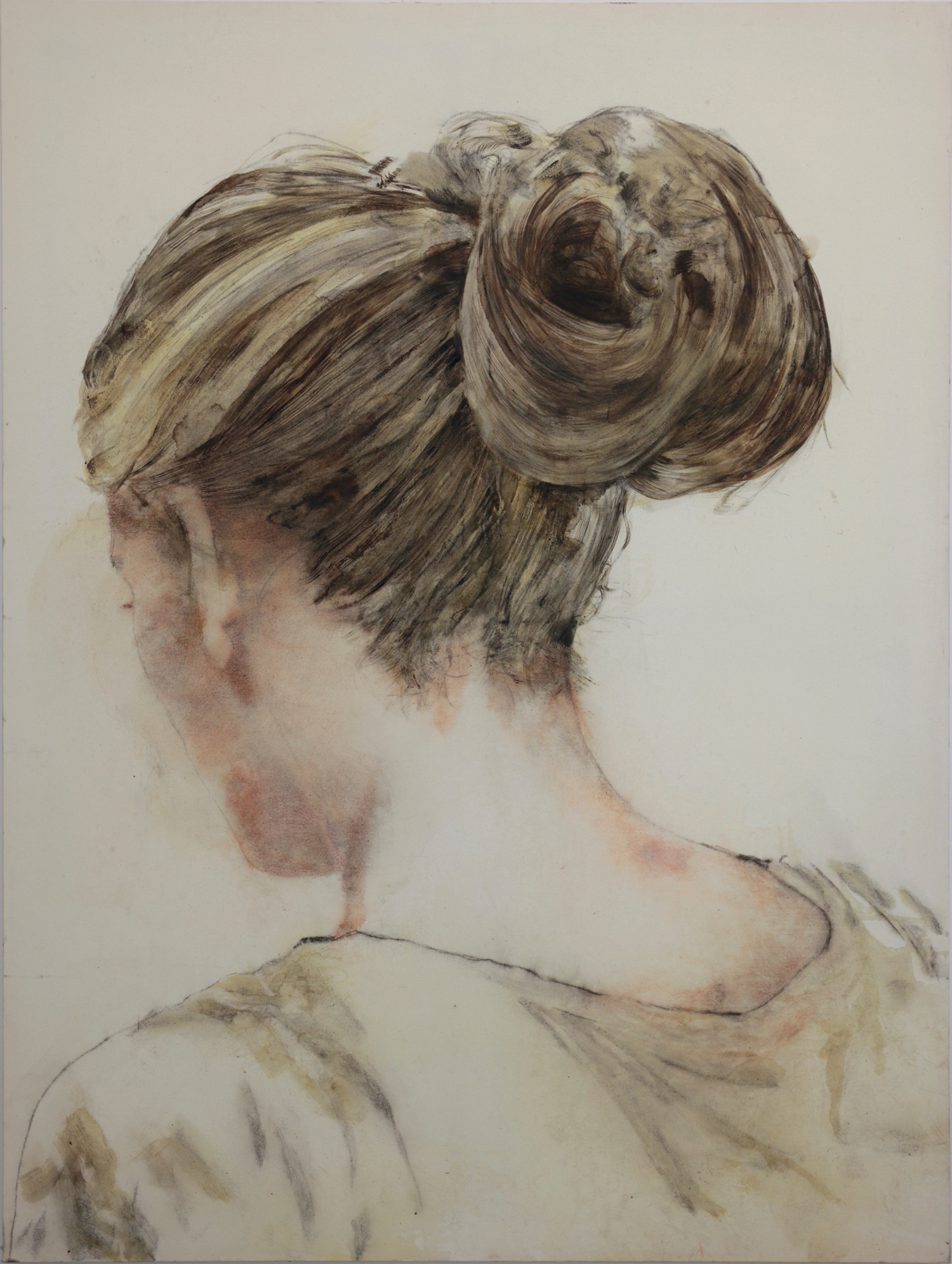 I suoi volti di donna hanno occhi che calamitano e trafiggono. Potrebbero sembrare amanti o compagne di un tempo, comunque profondamente conosciute, e si rivelano invece semplici immagini ridipinte dopo essere state selezionate e isolate da banali rotocalchi patinati. Fisicamente vicine ma a una distanza siderale. I fiori mettono in gioco una natura a portata di mano, addomesticata che, come una metonimia, si fa parte domestica di un tutto lontano e irraggiungibile, quello della natura. Mondo incontaminato che qui può stare sul comò. Anche i tessuti, spesso coperte e lenzuola, sono superfici che abitano la nostra intimità letteralmente a fior di pelle e che nei dipinti di Grenci vengono allontanati, resi visibili e non più solamente toccabili in un’immagine poetica. Ma la stessa pittura di Domenico Grenci appare allo stesso tempo distante e presente, pone in campo una profonda confidenza a suo modo sognante, come vista tra i barlumi del ricordo o offuscata da un vetro appannato, sottoposta a continue operazioni di avvicinamento e allontanamento lirico, visivo, empatico.