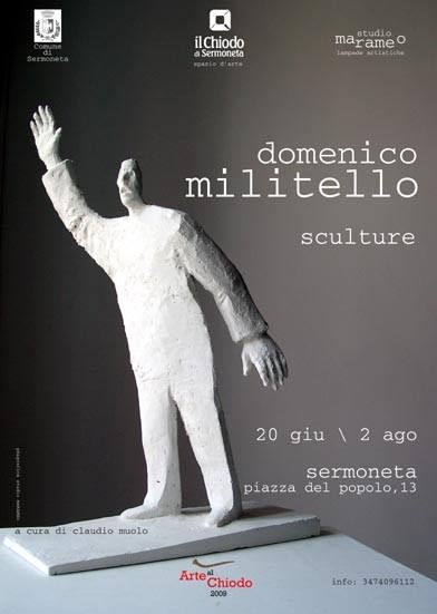 "...quando il padre dà vita ai figli per la seconda volta, dando forma alla terra, propone un evento non trascurabile per la memoria che ricompone un'antica storiella nella quale un vecchio signore barbuto impasta modella e soffia, proponendosi come il primo scultore della storia humana...certo che le forme di domenico non pretendono il soffio finale...vogliono soltanto catturare la nostra attenzione e mostrarci i personaggi che popolano i suoi sogni e...quella manona sollevata capace di bloccare un treno in corsa...senza strafare...si rivolge a tutti noi affacciati ai finestrini di quel treno per invitarci ad offrire un attimo della nostra esistenza agli attori che popolano la scena..."