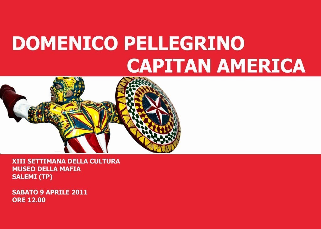 Ecco quindi questo moderno Capitan America in salsa siciliana invadere le sale del Museo della mafia, quale simbolo iconografico di quell’aspirazione che pone al centro lo scontro tra il mito e la tradizione in uno scontro tra “culture”. Capitan America lotta contro Teschio Rosso quale metafora della lotta dell’affermazione della legalità in contrasto alla cultura espressa dalle mafie, che per anni hanno abitato e trasformato la nostra isola e trova in Salemi una casa nella quale porre questo incrociato gioco di significanti e di significati contrastanti.