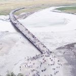 Mont-Saint-Michel, Saint-Malo, Cancale: le basse maree della Normandia e della Bretagna sono mostrate come paesaggi vuoti, spalancati, nei quali gli esseri viventi appaiono piccoli, lontani e di passaggio.