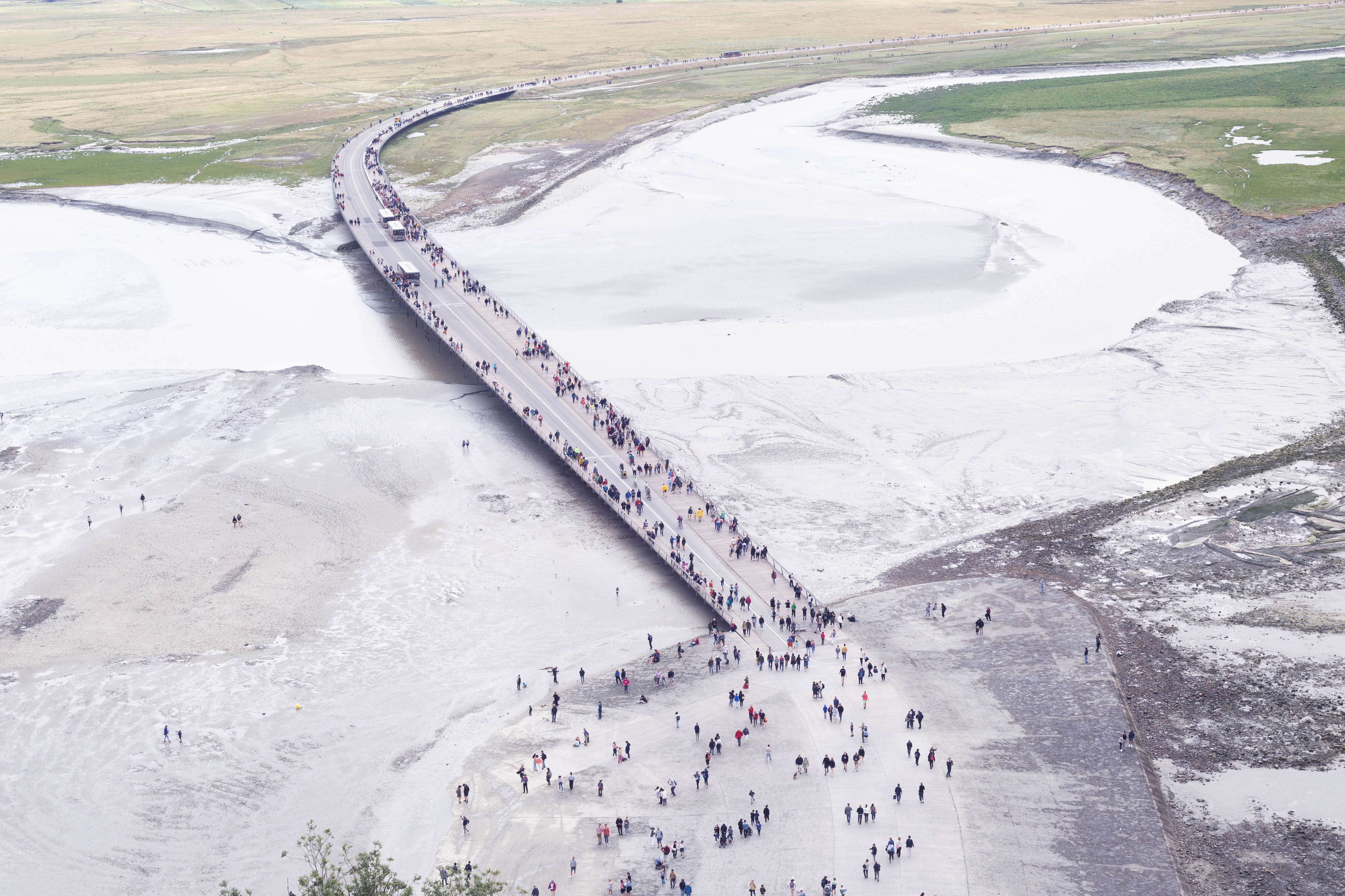 Mont-Saint-Michel, Saint-Malo, Cancale: le basse maree della Normandia e della Bretagna sono mostrate come paesaggi vuoti, spalancati, nei quali gli esseri viventi appaiono piccoli, lontani e di passaggio.