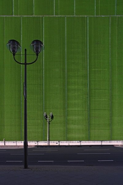 Proseguendo la sua linea di ricerca sull’architettura contemporanea (dopo aver studiato, in passato, le città spagnole e Milano), l’artista propone un approccio essenziale e asciutto alla capitale tedesca, di cui sembra nello stesso tempo voler succhiare l’essenza visiva ed esistenziale. Se quindi prevalgono nell’immagine il rigore delle linee geometriche e la purezza del colore, gli scatti assumono anche un significato emotivo che rimanda alle connotazioni di vuoto spaziale, imponenza, e vastità proprie di alcune metropoli contemporanee, di Berlino in particolare.