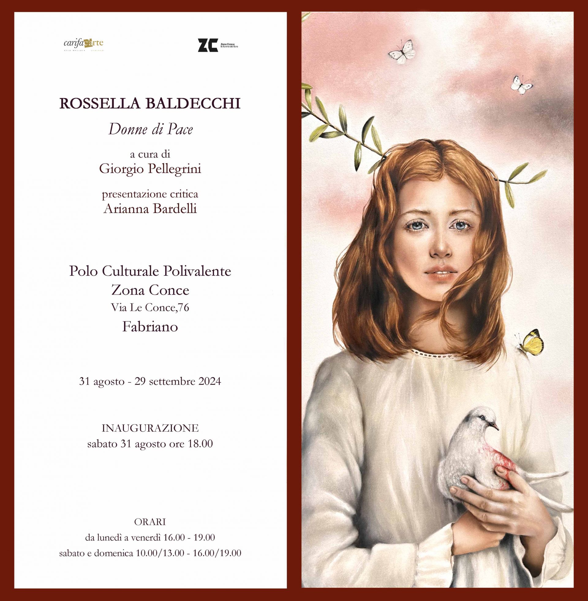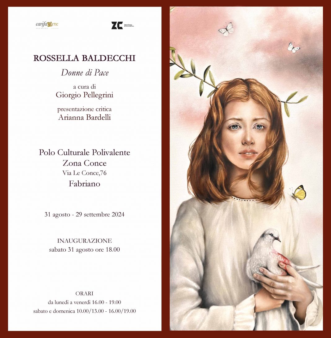 “Donne di Pace” è la nuova mostra che riporta a Fabriano in Zona Conce, Rossella Baldecchi a dieci anni dalla sua prima personale nella città della carta e dalla sua partecipazione, nel 2014, al Premio G.B. Salvi di Sassoferrato. L’artista pistoiese, coadiuvata dal curatore Giorgio Pellegrini e dalla critica dell’arte Arianna Bardelli espone la sua più recente produzione di opere su tela ed incisioni sulle tematiche a lei care.