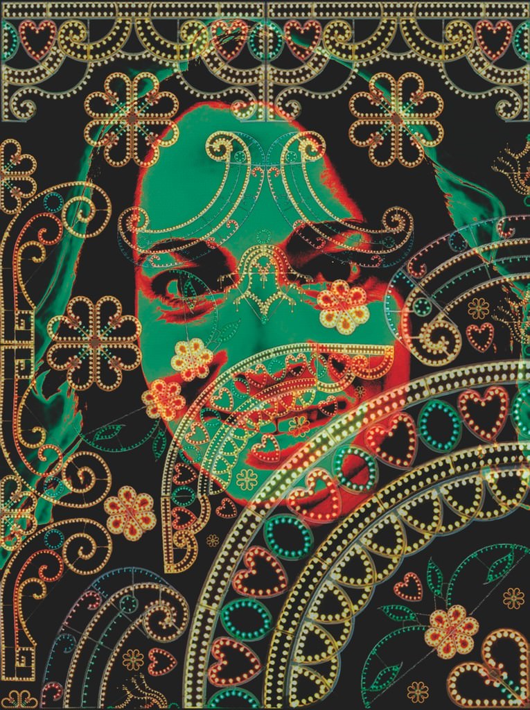 Stavolta ai disegni del pizzo si sostituiscono quelli delle luminarie, arabeschi di festa, anche qui legati alla storia della città: nell’innesto si ridefiniscono i connotati di volti indistinti, mimetizzati con l’architettura. Un’articolazione di sovrapposizioni, nel tentativo di suggerire allo spettatore la possibilità di una identificazione: l’immagine proiettata si fa specchio in cui cercarsi, lo spazio architettonico si fa congegno interattivo, mentre la memoria collettiva, descritta da oggetti e rituali antichi, si fa occasione per una nuova scrittura visiva. (testo di Helga Marsala)