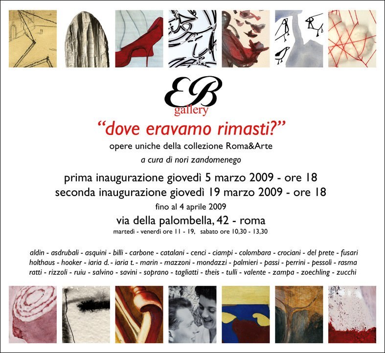 “Dove eravamo rimasti?” ripropone le opere uniche della collezione Roma&Arte, Associazione culturale attiva negli anni Novanta le cui mostre rappresentarono per alcuni degli artisti partecipanti, allora giovanissimi, un significativo momento di crescita, e per tutti un’occasione di confronto con il pubblico vissuta in una dimensione collettiva fuori dalle collaudate logiche del sistema ufficiale dell’arte.