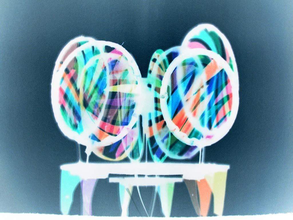 Il girato riporta i movimenti lenti e ipnotici delle sue leggerissime opere-macchina. Forme sospese che si muovono non per una forza cosciente o programmata, ma al minimo, apparentemente casuale, e in ogni caso mai indotto, refolo di aria. La forza che si applica alle strutture è quella esercitata dall’aria stessa nel suo moto convettivo, il fenomeno fisico più semplice cui dà vita qualsiasi fluido a cui si apporta dell’energia termica. Masse d’aria che si scaldano, salgono, si raffreddano, scendono. Creano vortici, il cui andamento è determinato dalle velocità di riscaldamento e raffreddamento, dalla presenza di ostacoli e dalla loro distribuzione nell’ambiente.