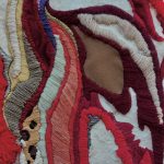 Successivamente, Drunkenrabbit ha chiesto ad ogni donna di identificarsi con un filo, un tessuto. Questi fili, che singolarmente rappresentano l’essenza che costituisce ogni donna coinvolta, sono stati utilizzati per realizzare un ricamo a mano su un grande foglio di carta (50x80), così che le trame di tutte le donne si incontrassero e si fondessero dando vita a un’unica e suggestiva opera d’arte. Un lavoro che ha richiesto 150 ore, 9000 minuti, per intrecciare tra loro 53 tessuti differenti.
