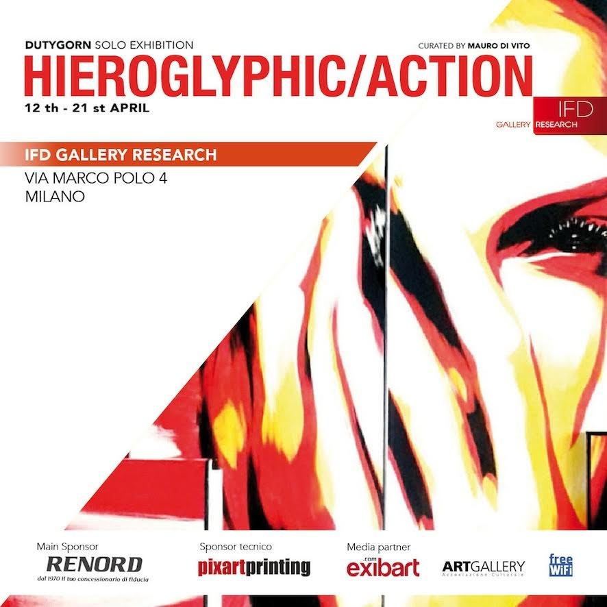 Da qui il titolo della mostra: Hieroglyphic-Action, (geroglific-azione), che è la trasformazione dell’immagine in glifo sacro, in icona, in tratto calligrafico, ideogrammatico, minimale e significante. L’azione del gesto pittorico di astrazione in forme sintetiche, riconducibili al tratto virtuoso dell’artista, che fissa, incide e circoscrive la bellezza delle forme femminili e astratte in un rapido danzare del pennello sulla tela.