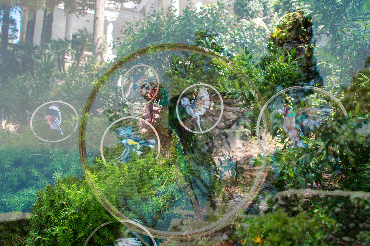 “Esposti tra gli alberi, negli spazi verdi che abbracciano la casa-museo, immersi nella luce e nel respiro del paesaggio, questi uccelli diventano presenze sospese: visioni fragili, apparizioni nel tempo. Le macchie, gli aloni, le imperfezioni che affiorano sul tulle sono tracce del tempo e della materia, come le cicatrici lasciate dal viaggio. Non vanno cancellate, ma accolte: raccontano la vulnerabilità, l’unicità di ogni essere.” Commenta nel testo critico la curatrice Maria Savarese.