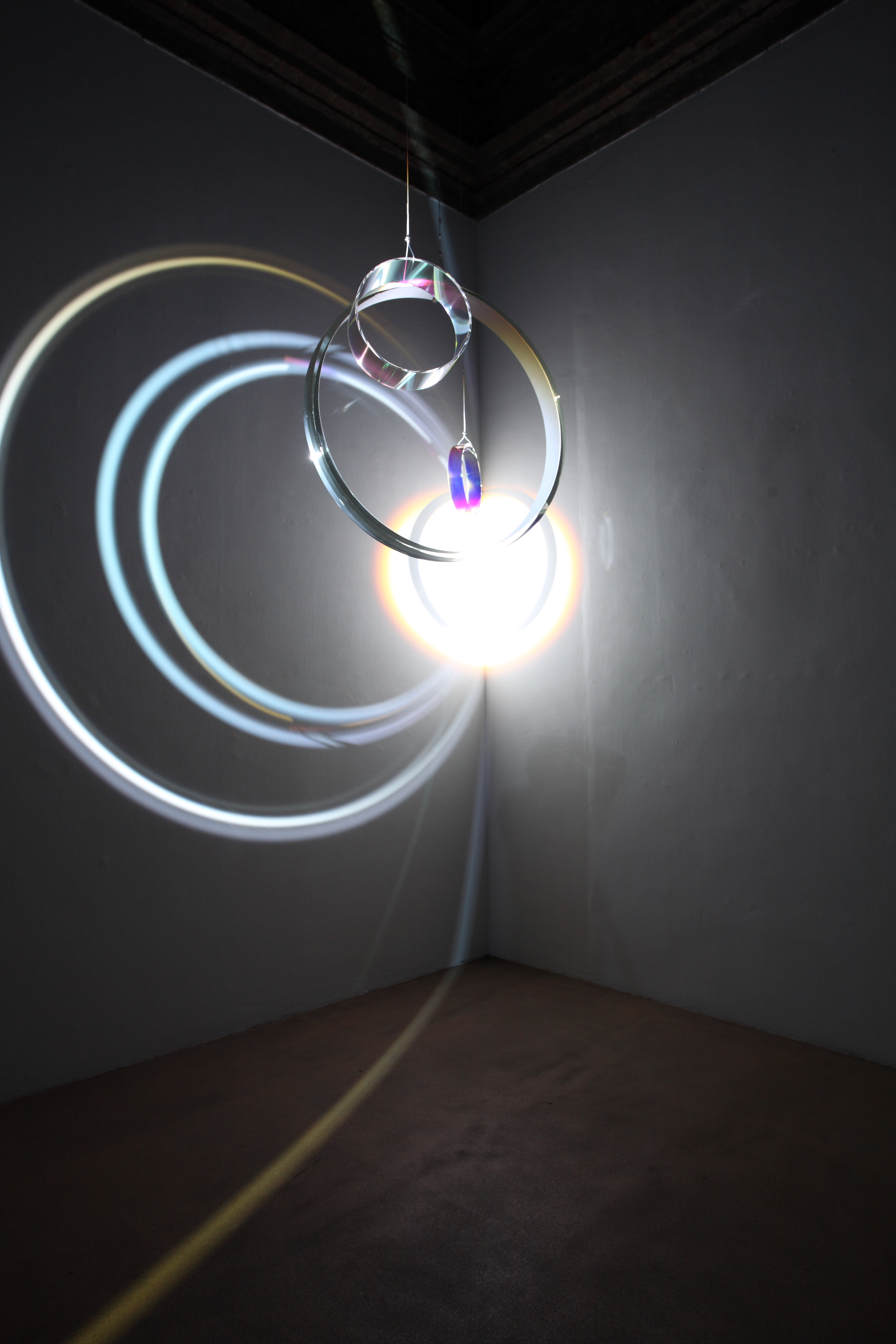 meccanicamente, gli anelli proiettano nello spazio espositivo molteplici ombre, producendo cerchi
