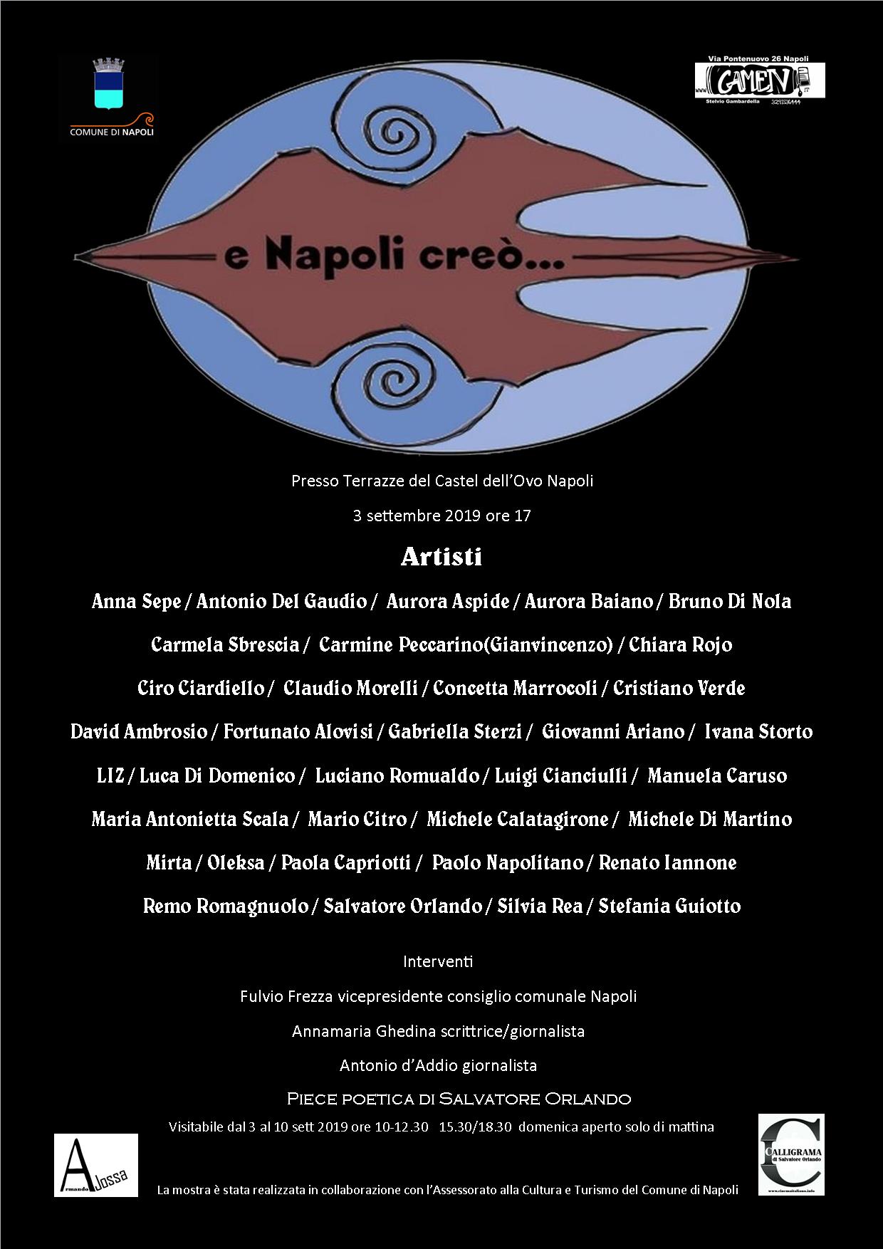 Collettiva presso terrazze Castel dell’Ovo Napoli 3 settembre 2019 ore 17 visitabile sino al 10 settembre ore 10/12,30 e 15,30/18,30 domenica aperto di mattina