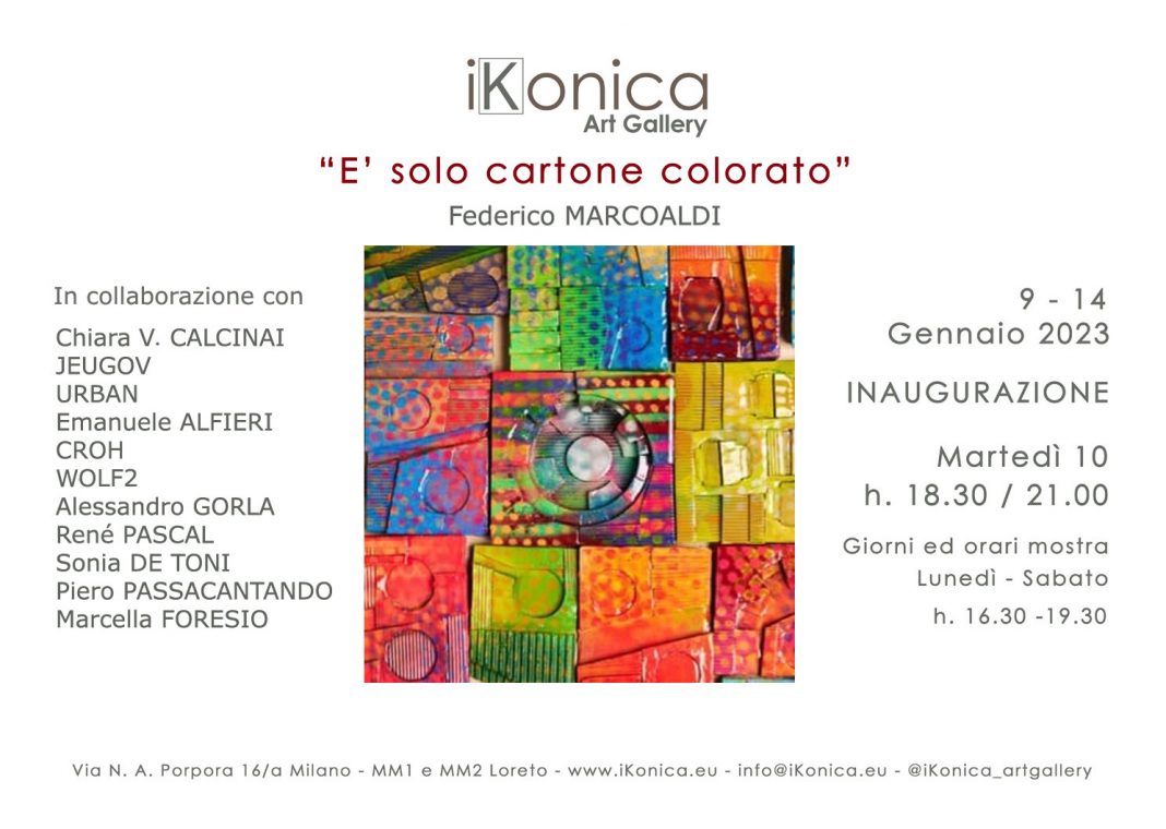 Un artista, Federico Marcoaldi che da sempre sviluppa una propria ricerca artistica attraverso il riciclo di cartone destinato al macero, presenta una serie di lavori grazie alla collaborazione con altri colleghi che si sono prestati ad intervenire con le proprie tecniche.