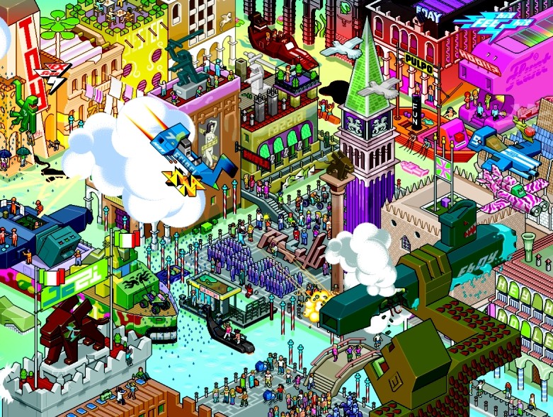 Pixorama è il titolo della prima esposizione personale in Italia di eBoy. Fondato a Berlino nel 1997, eBoy è un collettivo integrato da Steffen Sauerteig (Germania – 1967), Kai Vermehr (Venezuela – 1964) e Svend Smital (Germania – 1967)riconosciuti nel mondo per la Pixel Art
