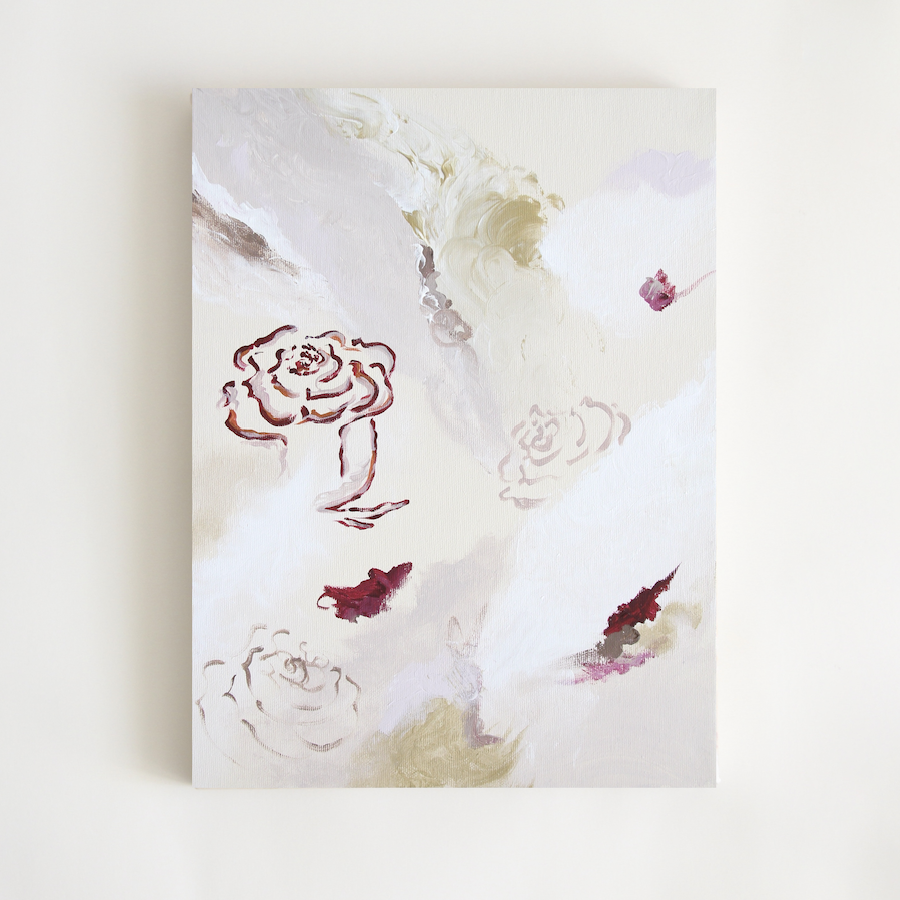 Ogni sua pennellata racconta una storia, diventa parte di una favola senza tempo, di un'esperienza vissuta, un momento di serena contemplazione che si concretizza a partire da un’armonica simbiosi di toni leggeri, di colori vibranti e tracce d'oro; una scelta cromatica da cui l’artista lascia trasparire quell’indissolubile legame con la natura e i suoi frutti. Fiori e foglie appena accennati sanciscono e simboleggiano quella connessione, invitano l'osservatore a riflettere sulla fralezza e forza della natura linee sinuose che catturano l'essenza di ciò che la natura offre e trasformano l'osservazione in un'esperienza emotiva e sensoriale. Le sue tele, pur nella loro astrazione, evocano un legame tangibile con il reale che ci circonda, unione sancita mediante tratti leggeri e una tavolozza che si integra armoniosamente con il mondo naturale, che lascia respirare l’intera composizione. Ogni opera sembra richiedere un momento di pausa, una riflessione interiore che consente di coglierne la bellezza e l’apparente semplicità; la delicatezza delle sue pennellate rende la fruizione dell’opera un momento quasi meditativo, una celebrazione della natura che si concretizza in un dialogo silenzioso tra l'opera e l’osservatore.