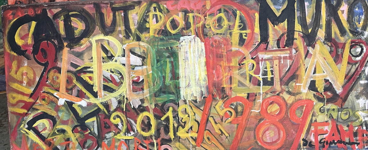 Gli echi si fanno cupi ed assordanti e, nella disperazione, elevando le braccia al cielo, ognuno avverte un senso di orrore e di sbandamento. Sembra che tutto crolli che tutto diventi marea informe di calcinacci, di corpi smembrati e di morti che vengono avvolti in teli macchiati di sangue: è la guerra. Queste sensazioni d’orrore turbano Luigi De Giovanni che viene travolto dall’urgenza di dipingere: di fissare tutto per dare sfogo al suo dolore. Ecco allora riemergere i jeans delle contestazioni sessantottine, delle rivoluzioni giovanili contro guerra e prepotenze mosse solo dal desiderio di potere, di mostrare i muscoli travolgendo popolazioni che non vorrebbero questo. I colori vengono lanciati con rabbia misti a scampoli di sofferenza che non lascia speranza. L’artista, per La Giornata Del Contemporaneo 2024, installa vecchie e nuove opere su tela e su jeans e in una performance catartica, che lo porta a strappare fogli macchiati di dolore, sogna un mondo migliore: un mondo, dimentico di utilitarismi e tristezza, dove regni la pace.